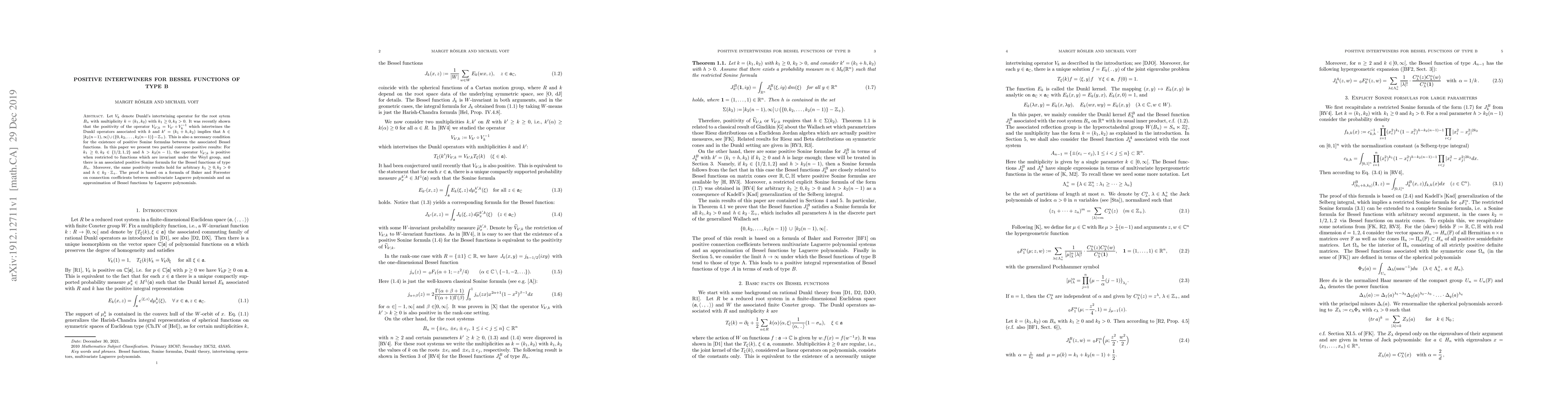 Researchers found that for specific conditions on $k_1$ and $k_2$, operators intertwining Bessel functions can be positive, leading to associated Sonine formulas.