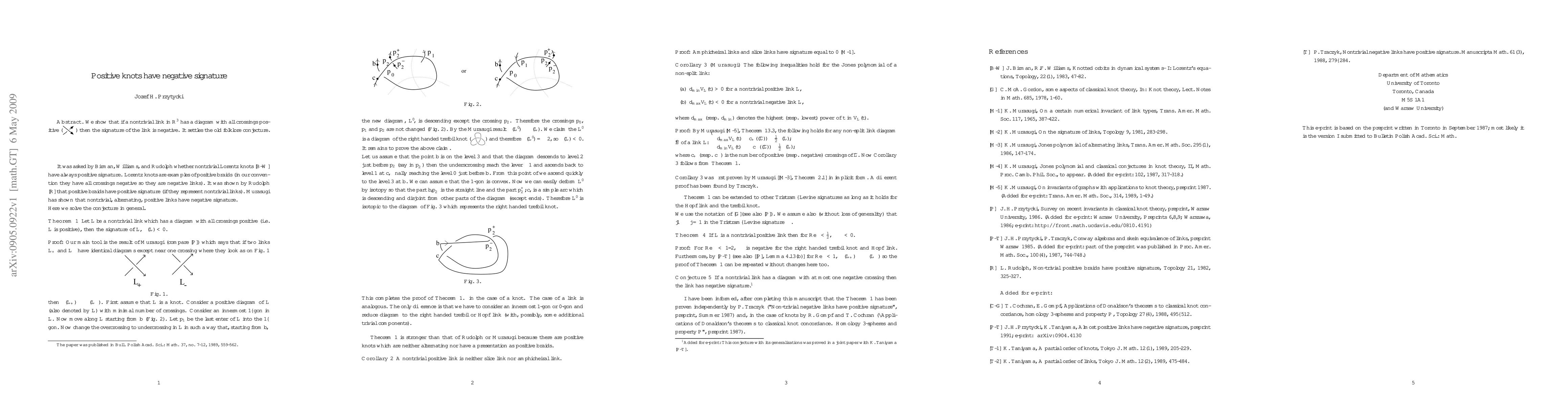 It was asked by J.Birman, Williams, and L.Rudolph whether nontrivial Lorentz knots have always positive signature. Lorentz knots are examples of positive braids (in our convention they have all crossings negative so they are negative links). It was shown by L.Rudolph that positive braids have positive signature (if they represent nontrivial links). K.Murasugi has shown that nontrivial, alternating, positive links have negative signature. Here we prove in general the old folklore conjecture that nontrivial positive links have negative signature.