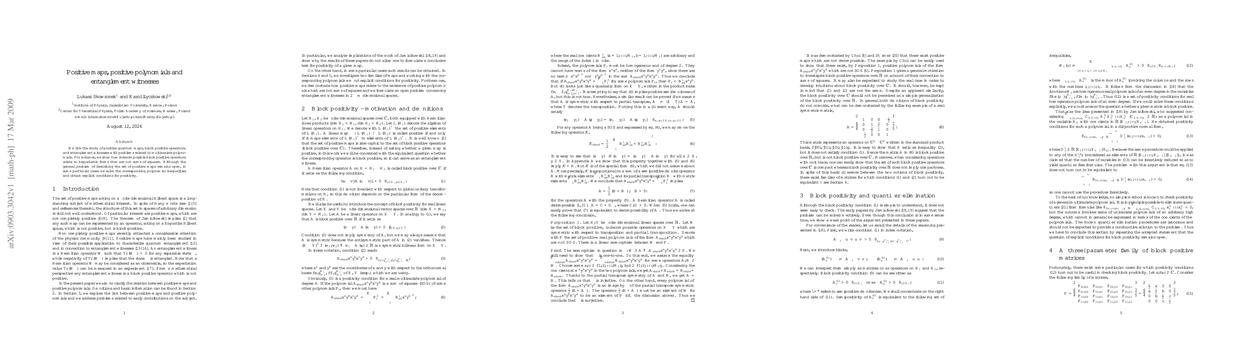 This paper connects the study of positive quantum maps and entanglement witnesses to multivariate polynomial problems, particularly demonstrating the relation between indecomposable block positive operators and biquadratic forms that cannot be expressed as sums of squares. While the general characterization of positive maps remains unresolved, the paper identifies specific polynomial inequalities to determine explicit positivity conditions in certain cases.