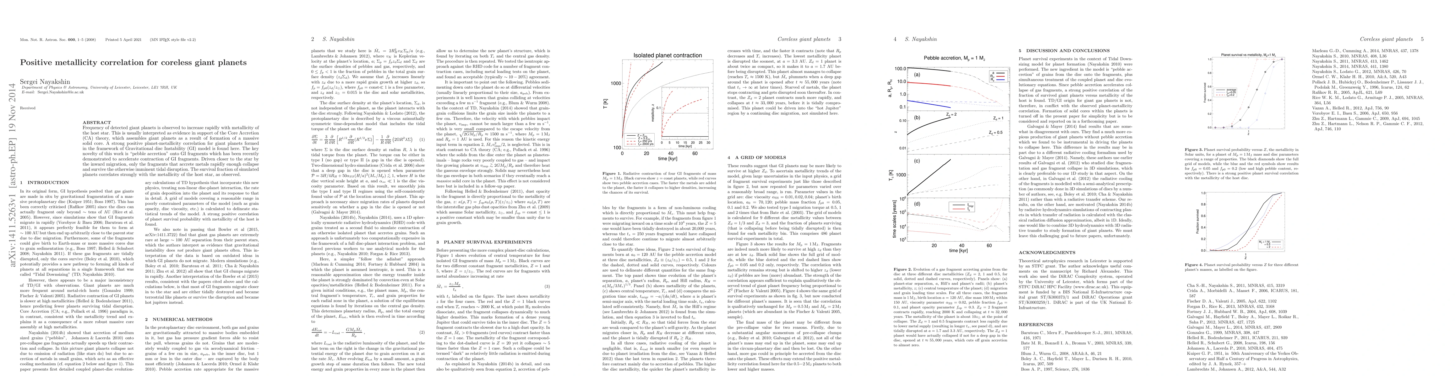 This research reveals a strong positive correlation between the metallicity of host stars and the frequency of coreless giant planets, challenging the traditional Core Accretion theory. Instead, it supports the Gravitational Disc Instability model, where "pebble accretion" accelerates the collapse of metal-rich fragments, explaining the observed planet-metallicity correlation.