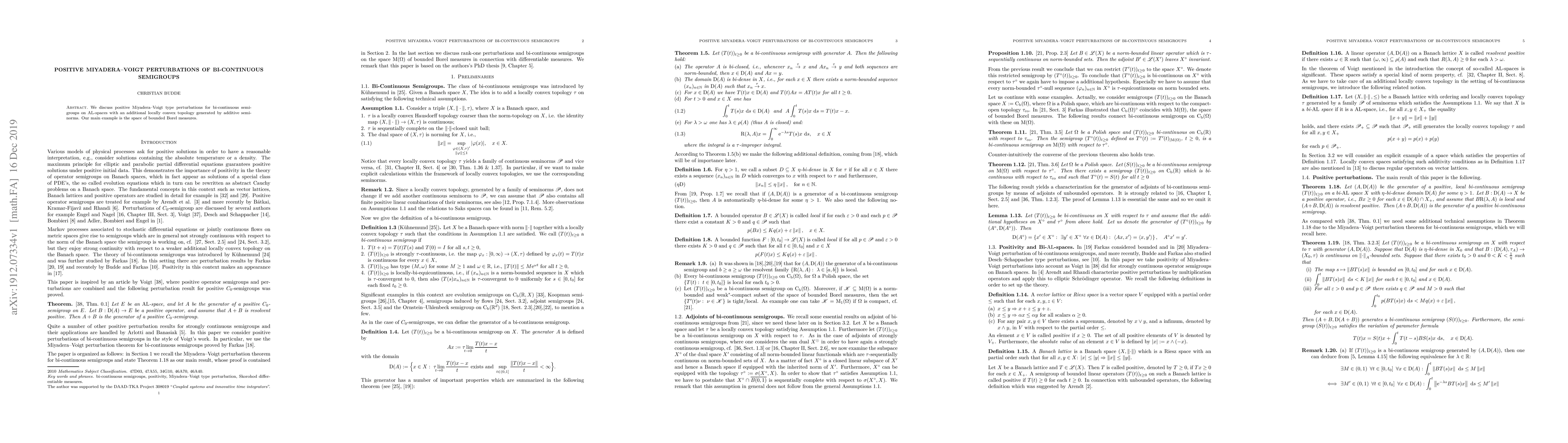 Summary: This paper explores positive Miyadera-Voigt perturbations of bi-continuous semigroups on AL-spaces, focusing on the additional locally convex topology and using the space of bounded Borel measures as a primary example. The study highlights the implications of these perturbations on the behavior of the semigroups.