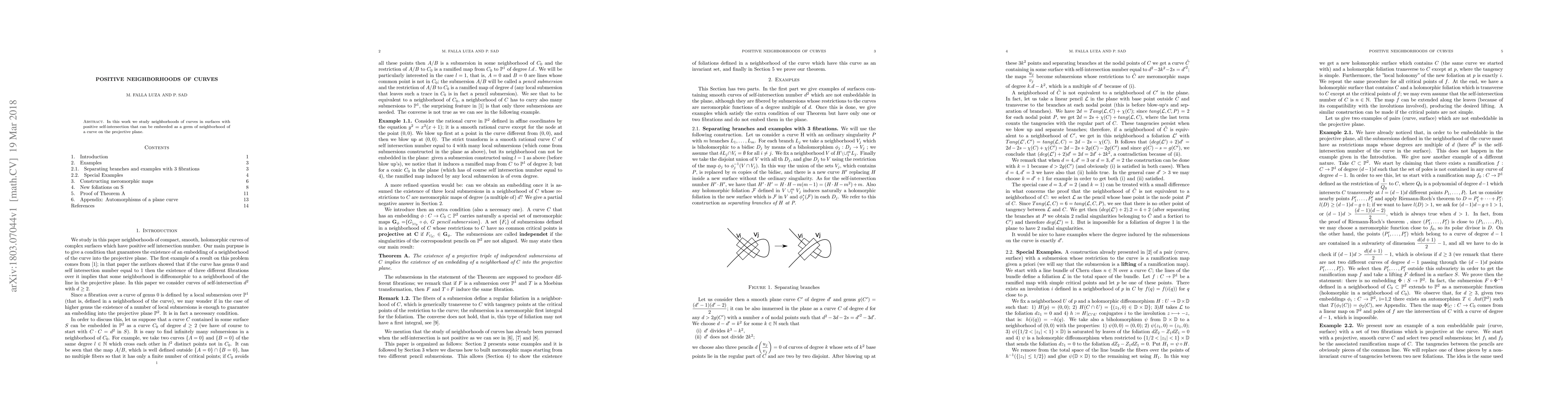 In this work we study neighborhoods of curves in surfaces with positive self-intersection that can be embeeded as a germ of neighborhood of a curve on the projective plane.