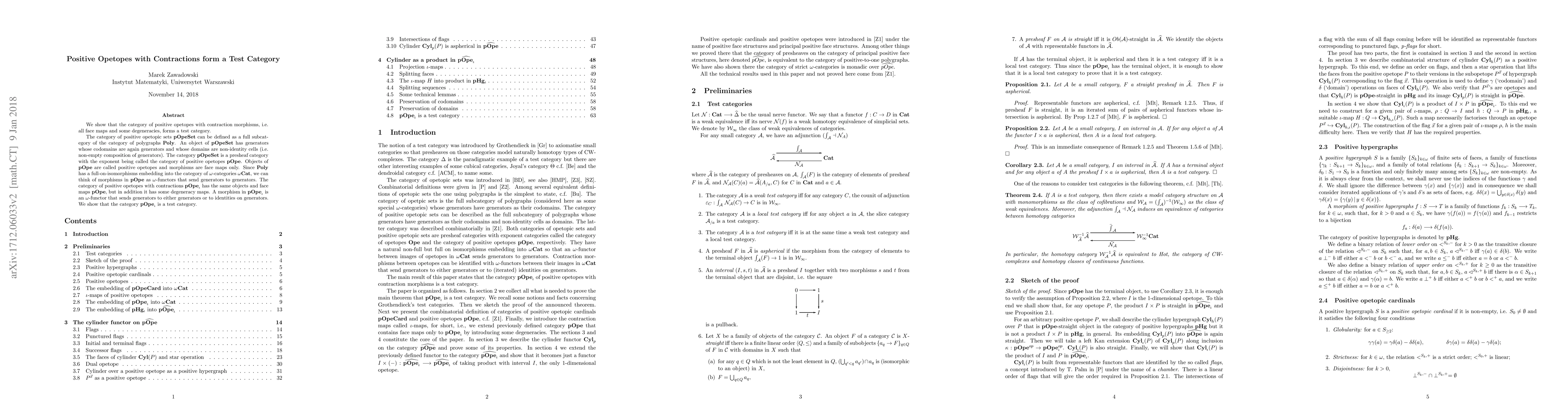 The paper demonstrates that the category of positive opetopes with contraction morphisms forms a test category, where morphisms are omega-functors that can send generators to generators or identities. It highlights the structural relationship between positive opetopes and polygraphs, emphasizing the inclusion of degeneracies.