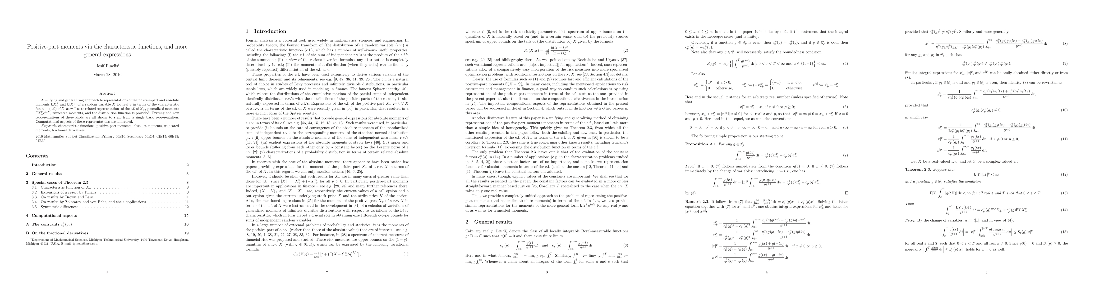 A unifying and generalizing approach to representations of the positive-part and absolute moments $\mathsf{E} X_+^p$ and $\mathsf{E}|X|^p$ of a random variable $X$ for real $p$ in terms of the characteristic function (c.f.) of $X$, as well as to related representations of the c.f.\ of $X_+$, generalized moments $\mathsf{E} X_+^p e^{iuX}$, truncated moments, and the distribution function is provided. Existing and new representations of these kinds are all shown to stem from a single basic representation. Computational aspects of these representations are addressed.