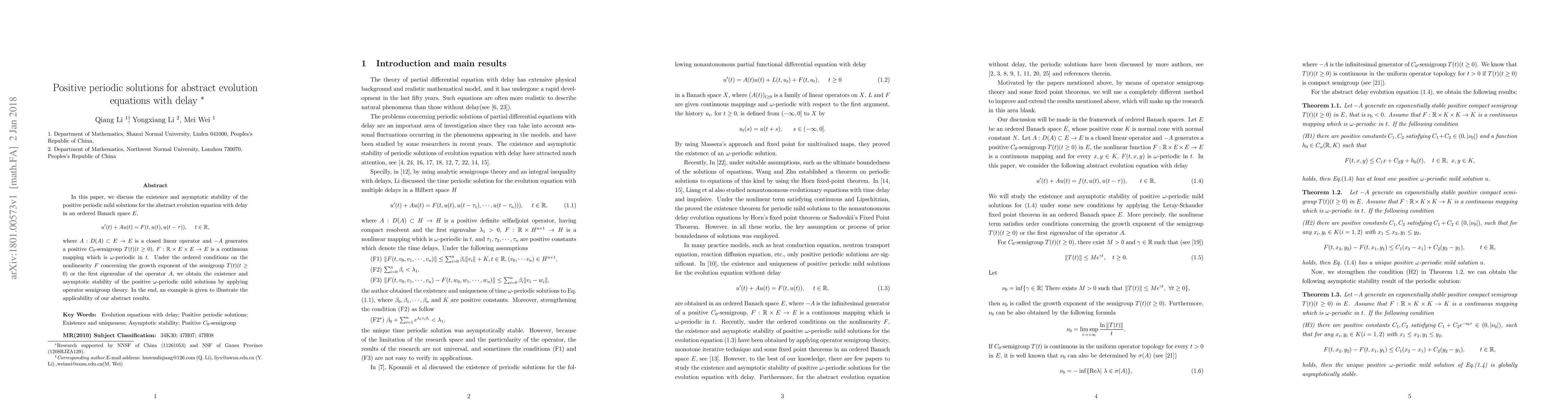 In this paper, we discuss the existence and asymptotic stability of the positive periodic mild solutions for the abstract evolution equation with delay in an ordered Banach space $E$, $$u'(t)+Au(t)=F(t,u(t),u(t-\tau)),\ \ \ \ t\in\R,$$ where $A:D(A)\subset E\rightarrow E$ is a closed linear operator and $-A$ generates a positive $C_{0}$-semigroup $T(t)(t\geq0)$, $F:\R\times E\times E\rightarrow E$ is a continuous mapping which is $\omega$-periodic in $t$. Under order conditions on the nonlinearity $F$ concerning the growth exponent of the semigroup $T(t)(t\geq0)$ or the first eigenvalue of the operator $A$, we obtain the existence and asymptotic stability results of the positive $\omega$-periodic mild solutions by applying operator semigroup theory. In the end, an example is given to illustrate the applicability of our abstract results.