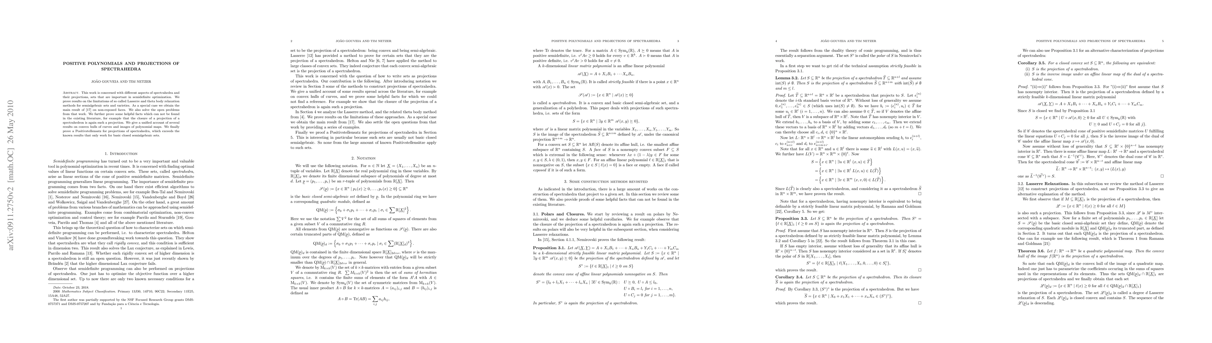 This work is concerned with different aspects of spectrahedra and their projections, sets that are important in semidefinite optimization. We prove results on the limitations of so called Lasserre and theta body relaxation methods for semialgebraic sets and varieties. As a special case we obtain the main result of the paper "Exposed faces of semidefinite representable sets" of Netzer, Plaumann and Schweighofer. We also solve the open problems from that work. We further prove some helpful facts which can not be found in the existing literature, for example that the closure of a projection of a spectrahedron is again such a projection. We give a unified account of several results on convex hulls of curves and images of polynomial maps. We finally prove a Positivstellensatz for projections of spectrahedra, which exceeds the known results that only work for basic closed semialgebraic sets.