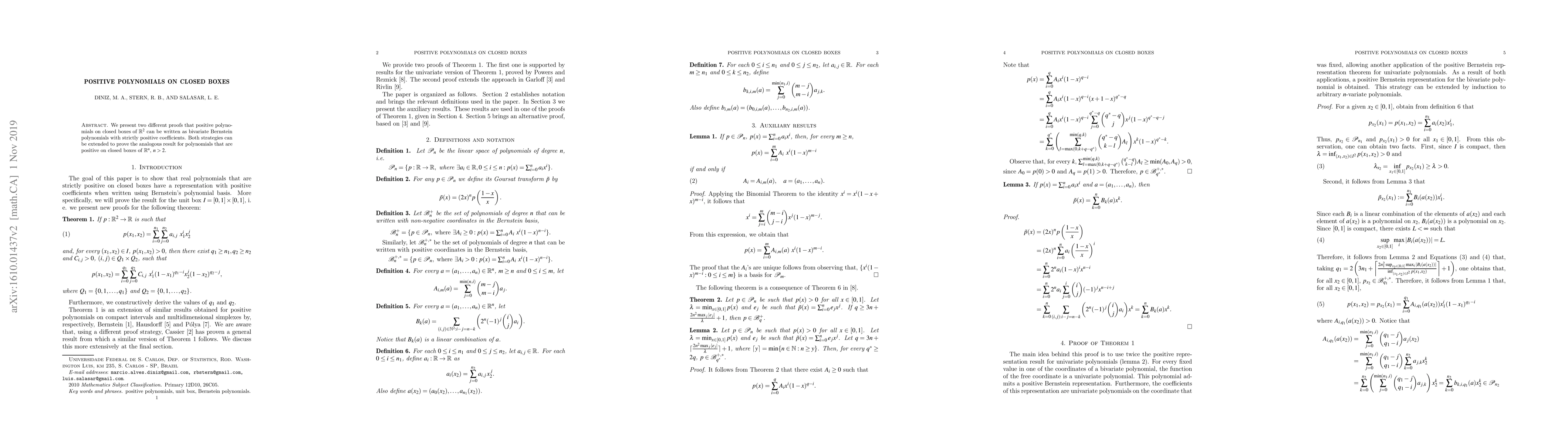 Summary: This paper provides two distinct proofs that positive polynomials on closed boxes in $\mathbb{R}^2$ can be expressed as bivariate Bernstein polynomials with strictly positive coefficients. The methods are also applicable to prove the same result for higher dimensions, $n>2$.