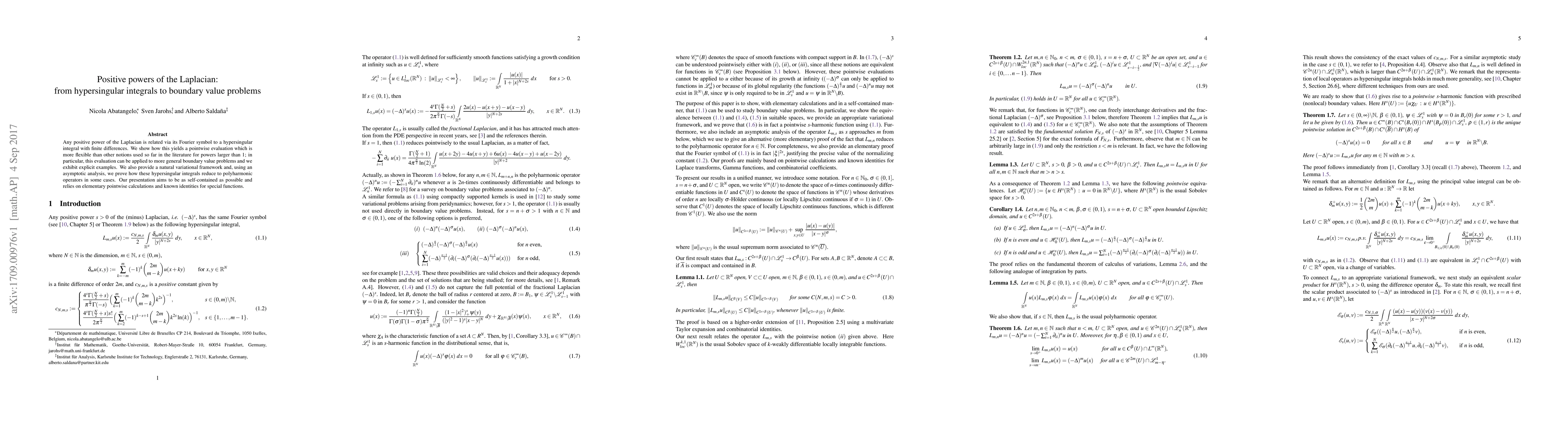 This paper explores the relationship between positive powers of the Laplacian and hypersingular integrals, presenting a more flexible pointwise evaluation method for powers greater than 1. It also applies this method to general boundary value problems and provides a variational framework, demonstrating the reduction of hypersingular integrals to polyharmonic operators through asymptotic analysis.