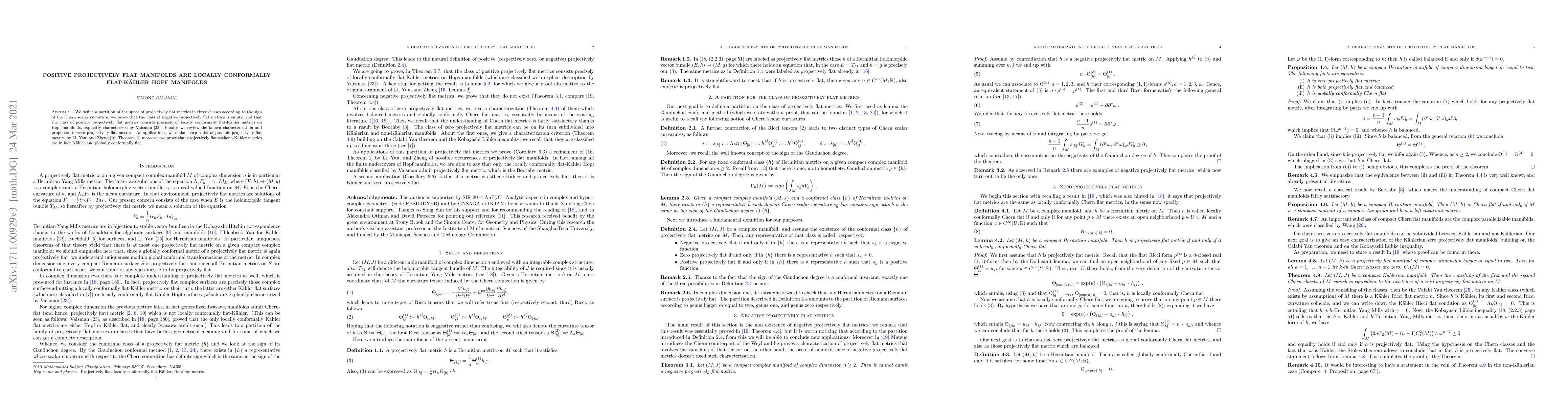We define a partition of the space of projectively flat metrics in three classes according to the sign of the Chern scalar curvature; we prove that the class of negative projectively flat metrics is empty, and that the class of positive projectively flat metrics consists precisely of locally conformally flat-K\"ahler metrics on Hopf manifolds, explicitly characterized by Vaisman. Finally, we review the properties of zero projectively flat metrics. As applications, we refine a list of possible projectively flat metrics by Li, Yau, and Zheng; moreover we prove that projectively flat astheno-K\"ahler metrics are in fact K\"ahler and globally conformally flat.