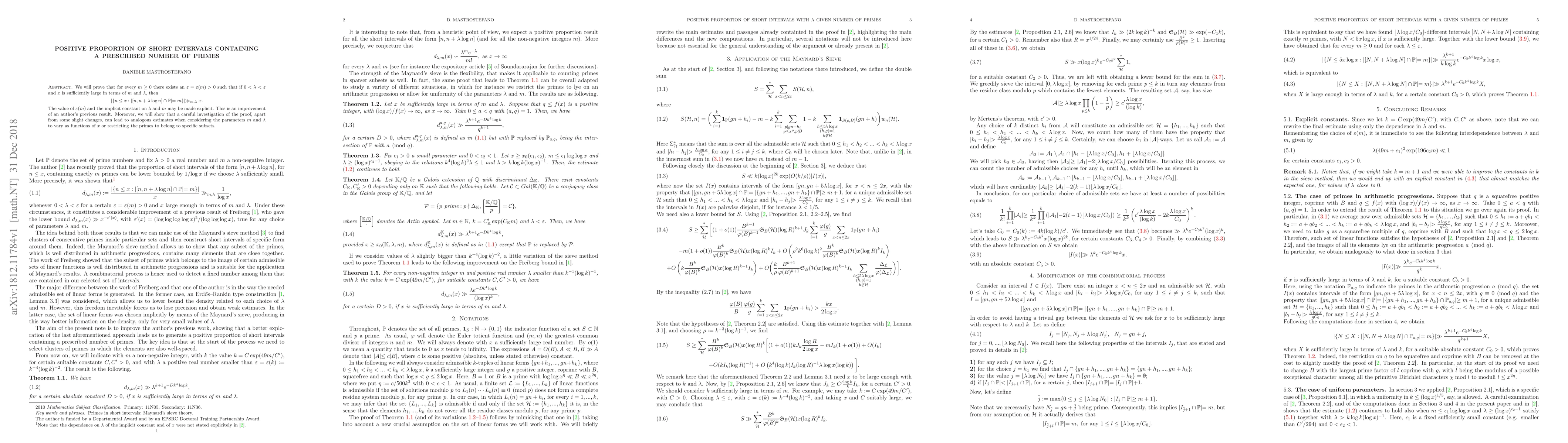 We will prove that for every $m\geq 0$ there exists an $\varepsilon=\varepsilon(m)>0$ such that if $0<\lambda<\varepsilon$ and $x$ is sufficiently large in terms of $m$ and $\lambda$, then $$|\lbrace n\leq x: |[n,n+\lambda\log n]\cap \mathbb{P}|=m\rbrace|\gg_{m,\lambda} x.$$ The value of $\varepsilon(m)$ and the implicit constant on $\lambda$ and $m$ may be made explicit. This is an improvement of an author's previous result. Moreover, we will show that a careful investigation of the proof, apart from some slight changes, can lead to analogous estimates when considering the parameters $m$ and $\lambda$ to vary as functions of $x$ or restricting the primes to belong to specific subsets.