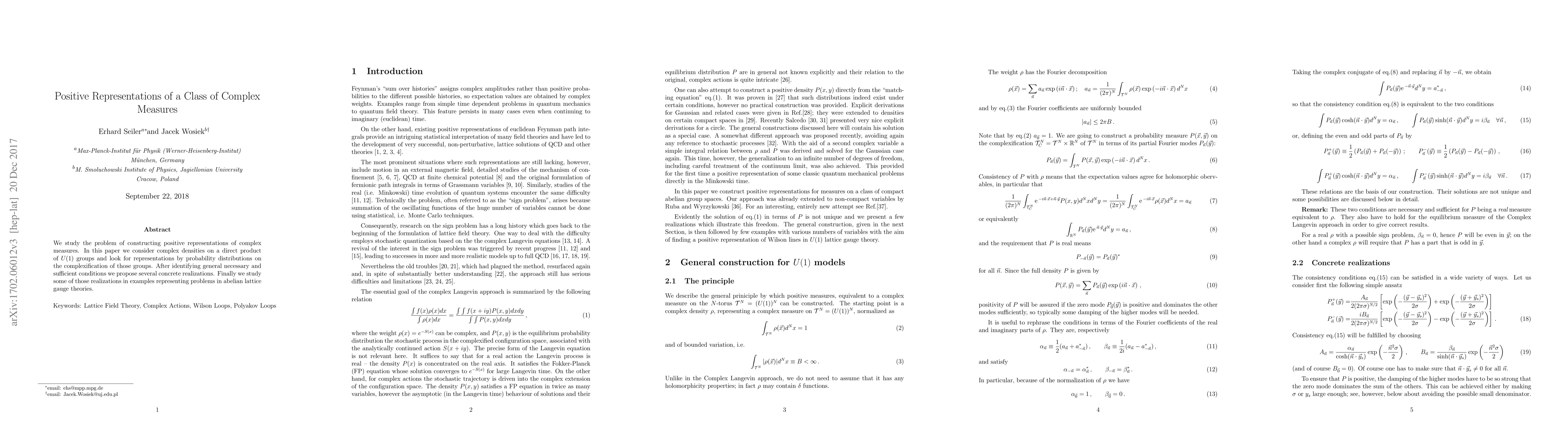 We study the problem of constructing positive representations of complex measures. In this paper we consider complex densities on a direct product of $U(1)$ groups and look for representations by probability distributions on the complexification of those groups. After identifying general necessary and sufficient conditions we propose several concrete realizations. Finally we study some of those realizations in examples representing problems in abelian lattice gauge theories.