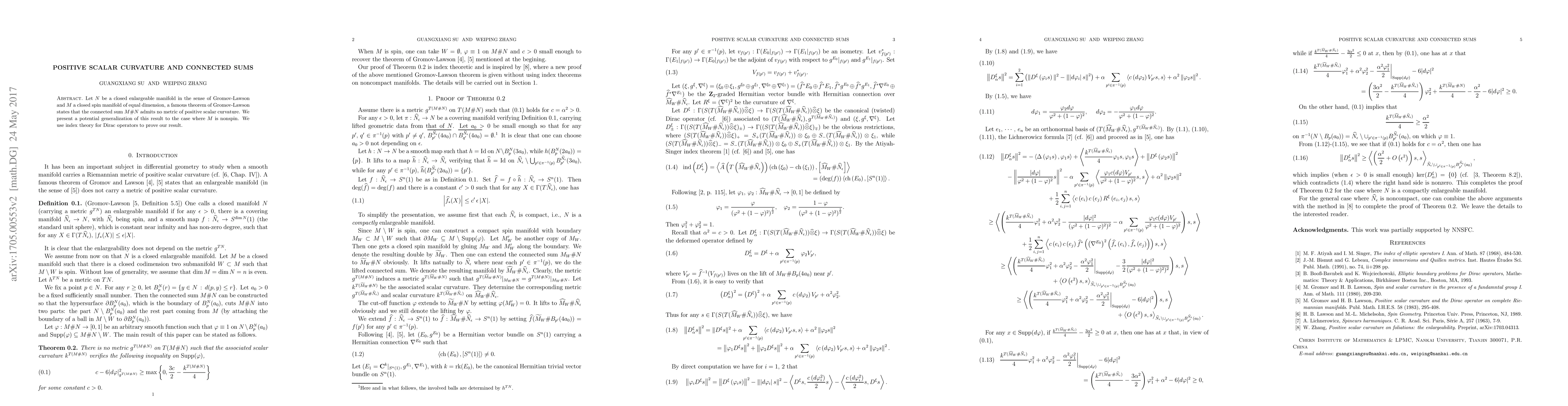 This paper generalizes a Gromov-Lawson theorem on the absence of positive scalar curvature in connected sums of spin and enlargeable manifolds, extending the result to nonspin manifolds using index theory for Dirac operators.