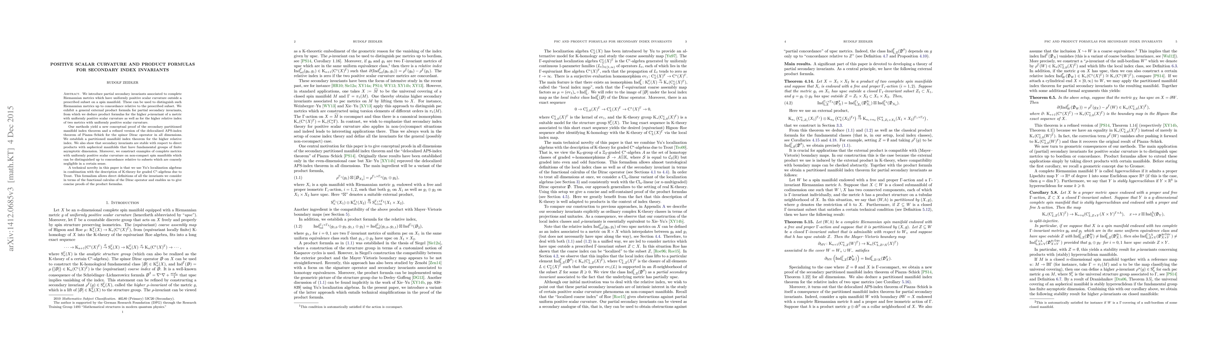 We introduce partial secondary invariants associated to complete Riemannian metrics which have uniformly positive scalar curvature outside a prescribed subset on a spin manifold. These can be used to distinguish such Riemannian metrics up to concordance relative to the prescribed subset. We exhibit a general external product formula for partial secondary invariants, from which we deduce product formulas for the higher rho-invariant of a metric with uniformly positive scalar curvature as well as for the higher relative index of two metrics with uniformly positive scalar curvature. Our methods yield a new conceptual proof of the secondary partitioned manifold index theorem and a refined version of the delocalized APS-index theorem of Piazza-Schick for the spinor Dirac operator in all dimensions. We establish a partitioned manifold index theorem for the higher relative index. We also show that secondary invariants are stable with respect to direct products with aspherical manifolds that have fundamental groups of finite asymptotic dimension. Moreover, we construct examples of complete metrics with uniformly positive scalar curvature on non-compact spin manifolds which can be distinguished up to concordance relative to subsets which are coarsely negligible in a certain sense. A technical novelty in this paper is that we use Yu's localization algebras in combination with the description of K-theory for graded C*-algebras due to Trout. This formalism allows direct definitions of all the invariants we consider in terms of the functional calculus of the Dirac operator and enables us to give concise proofs of the product formulas.