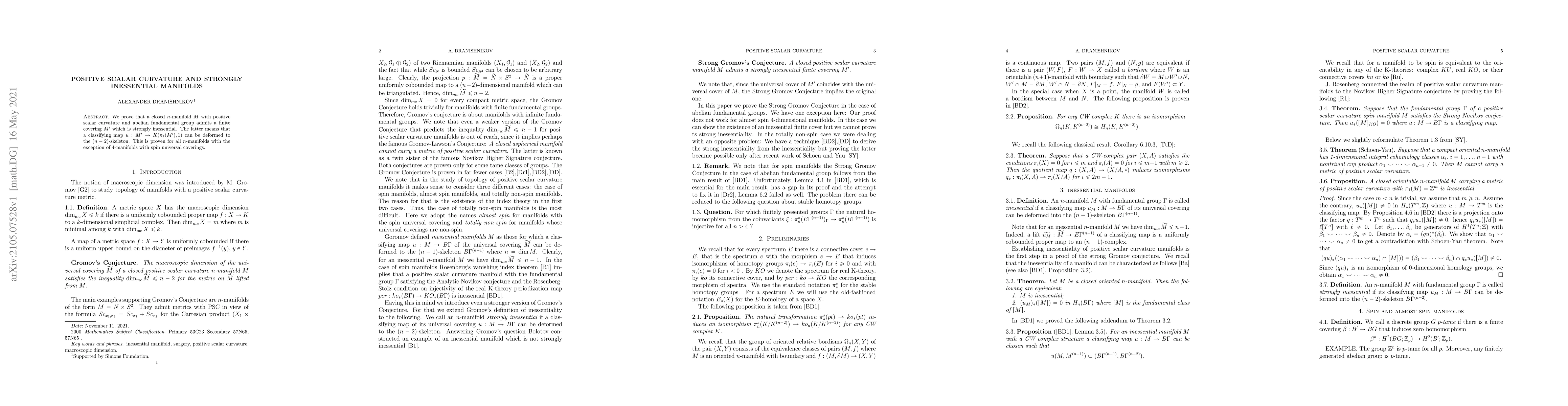 We prove that a closed $n$-manifold $M$ with positive scalar curvature and abelian fundamental group admits a finite covering $M'$ which is strongly inessential. The latter means that a classifying map $u:M'\to K(\pi_1(M'),1)$ can be deformed to the $(n-2)$-skeleton. This is proven for all $n$-manifolds with the exception of 4-manifolds with spin universal coverings.