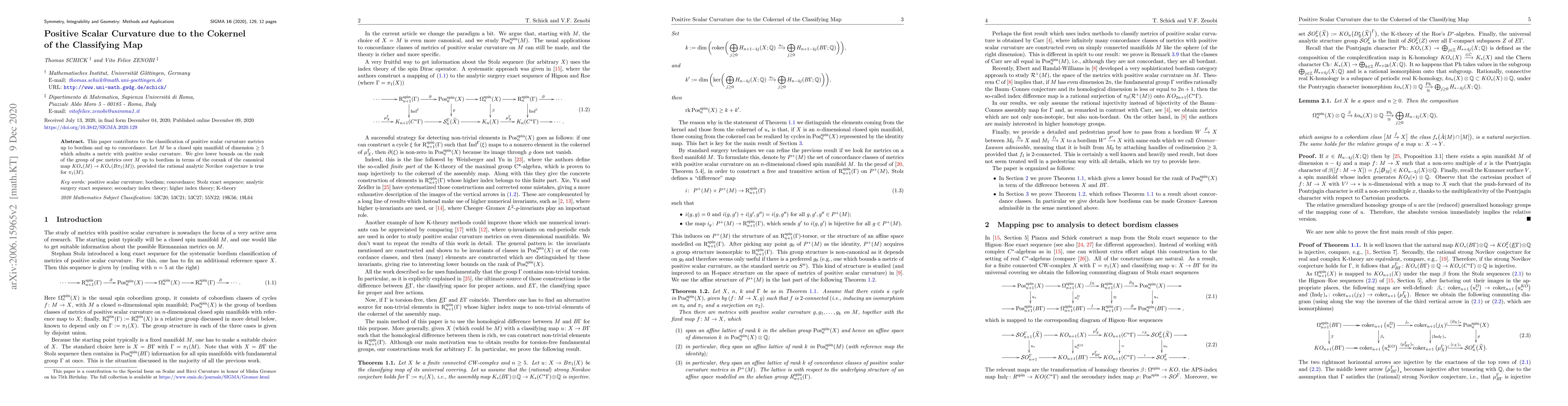 This paper contributes to the classification of positive scalar curvature metrics up to bordism and up to concordance. Let $M$ be a closed spin manifold of dimension $\ge 5$ which admits a metric with positive scalar curvature. We give lower bounds on the rank of the group of psc metrics over $M$ up to bordism in terms of the corank of the canonical map $KO_*(M)\to KO_*(B\pi_1(M))$, provided the rational analytic Novikov conjecture is true for $\pi_1(M)$.