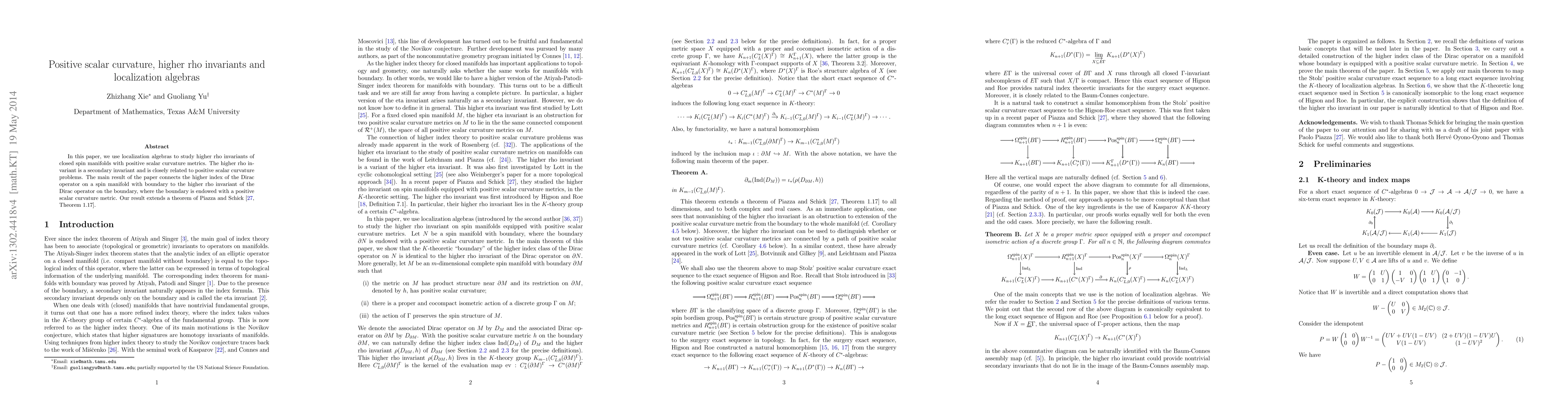 This paper employs localization algebras to investigate higher rho invariants in closed spin manifolds with positive scalar curvature metrics. It establishes a connection between the higher index of the Dirac operator on a spin manifold with boundary and the higher rho invariant on the boundary, extending Piazza and Schick's theorem.
