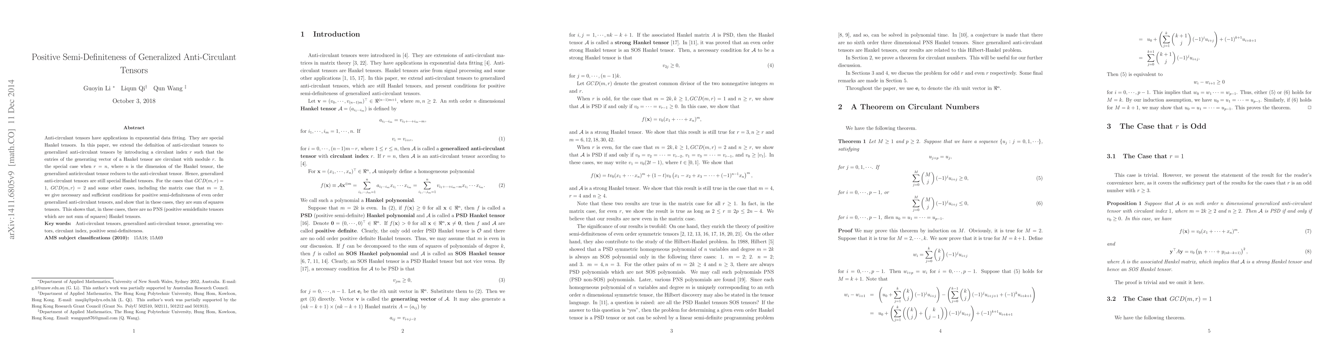 This paper extends the concept of anti-circulant tensors to generalized anti-circulant tensors, introducing a circulant index $r$. It provides necessary and sufficient conditions for the positive semi-definiteness of even-order generalized anti-circulant tensors, showing that they are sum of squares tensors when $GCD(m, r)$ equals 1 or 2, and thus no positive semi-definite tensors exist outside this sum of squares.