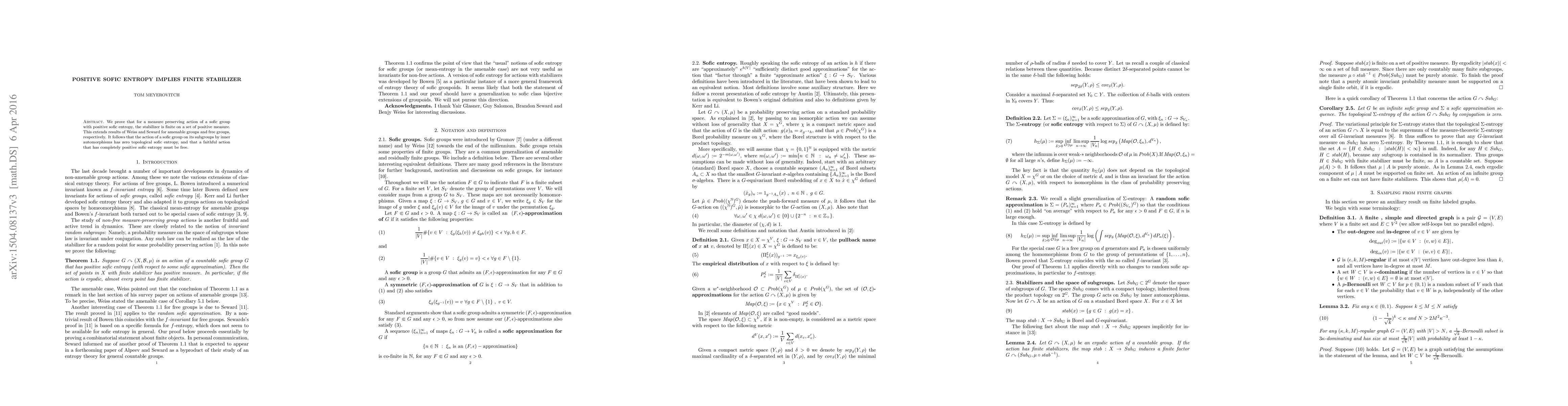 Summary: This paper demonstrates that sofic groups with positive sofic entropy have measure-preserving actions where points with finite stabilizers constitute a set of positive measure. It extends prior results for amenable and free groups and implies zero topological sofic entropy for actions on subgroups by inner automorphisms.
