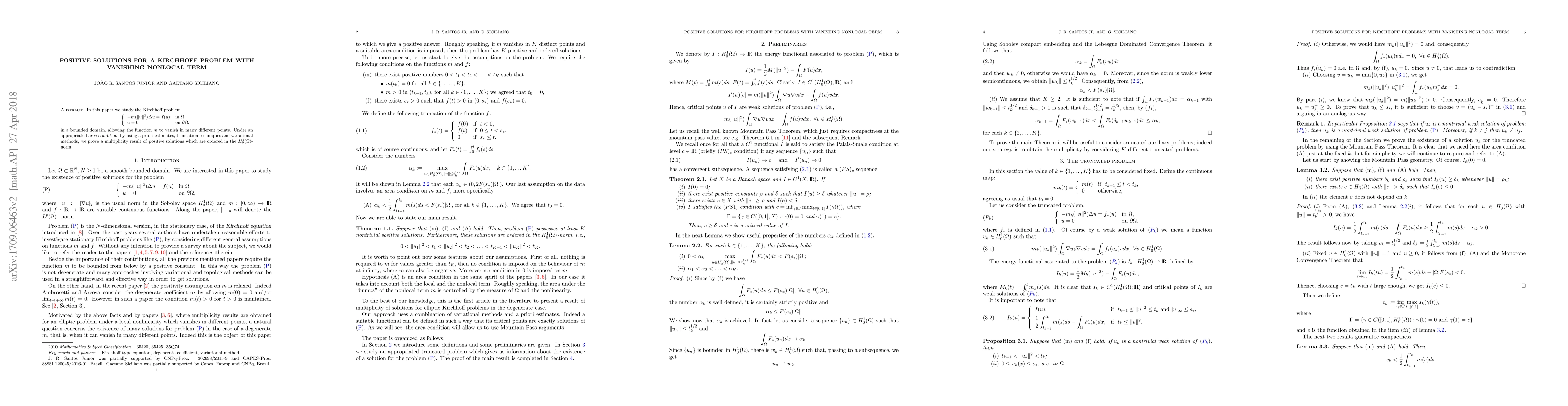 In this paper we study the Kirchhoff problem \begin{equation*} \left \{ \begin{array}{ll} -m(\| u \|^{2})\Delta u = f(u) & \mbox{in $\Omega$,} u=0 & \mbox{on $\partial\Omega$,} \end{array}\right. \end{equation*} in a bounded domain, allowing the function $m$ to vanish in many different points. Under an appropriated {\sl area condition}, by using a priori estimates, truncation techniques and variational methods, we prove a multiplicity result of positive solutions which are ordered in the $H_{0}^{1}(\Omega)$-norm.