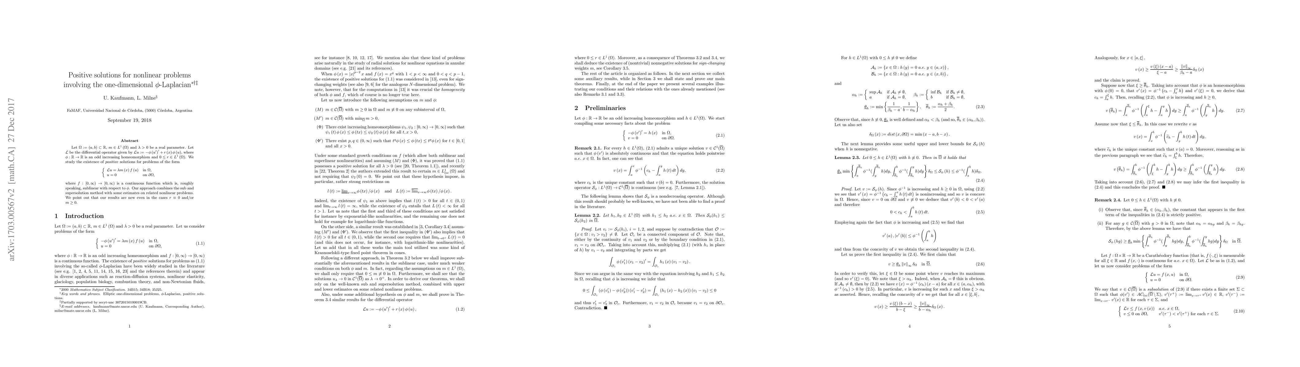 This paper investigates the existence of positive solutions for nonlinear differential equations involving the one-dimensional $\phi$-Laplacian operator. The study combines the sub and supersolution method with nonlinear problem estimates, yielding new results even when specific conditions simplify the problem.