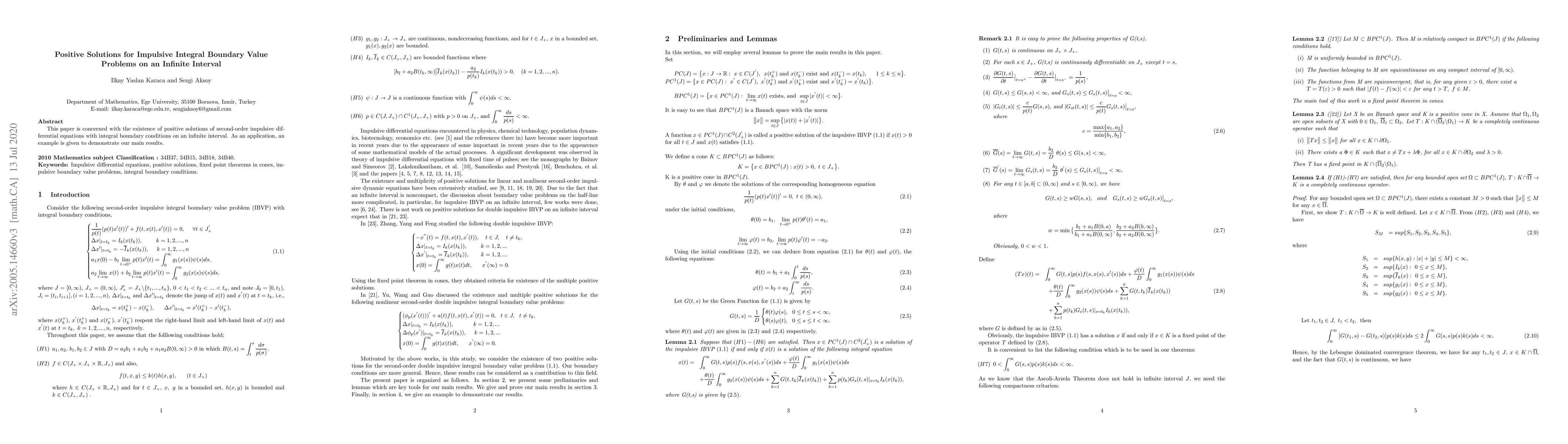 The paper investigates the existence of positive solutions for second-order impulsive differential equations with integral boundary conditions on an infinite interval, employing techniques from fixed point theory and the theory of impulsive differential equations.