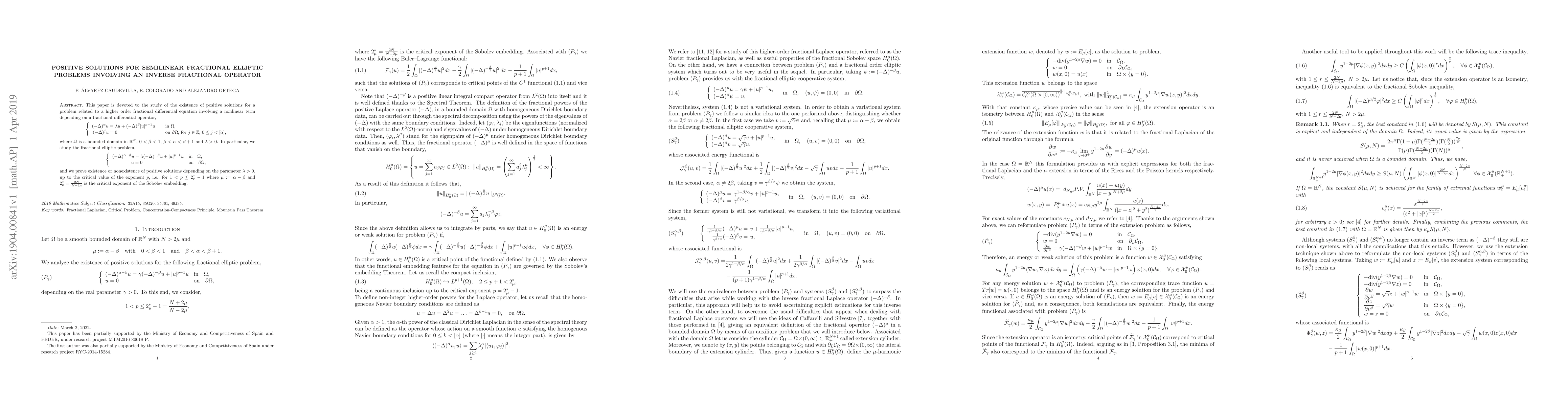This paper is devoted to the study of the existence of positive solutions for a problem related to a higher order fractional differential equation involving a nonlinear term depending on a fractional differential operator, $$(-\Delta)^{\alpha} u=\lambda u+ (-\Delta)^{\beta}|u|^{p-1}u \quad \mbox{in}\quad \Omega;\qquad (-\Delta)^{j}u=0\quad \mbox{on}\quad \partial\Omega,\quad \mbox{for}\quad j\in\mathbb{Z},\: 0\leq j< [\alpha]$$ where $\Omega$ is a bounded domain in $\mathbb{R}^{N}$, $0<\beta<1$, $\beta<\alpha<\beta+1$ and $\lambda>0$. In particular, we study the fractional elliptic problem, $$ (-\Delta)^{\alpha-\beta} u= \lambda(-\Delta)^{-\beta}u+ |u|^{p-1}u \quad\mbox{in} \quad \Omega;\qquad u=0 \quad \hbox{on} \quad \partial\Omega,$$ and we prove existence or nonexistence of positive solutions depending on the parameter $\lambda>0$, up to the critical value of the exponent $p$, i.e., for $1