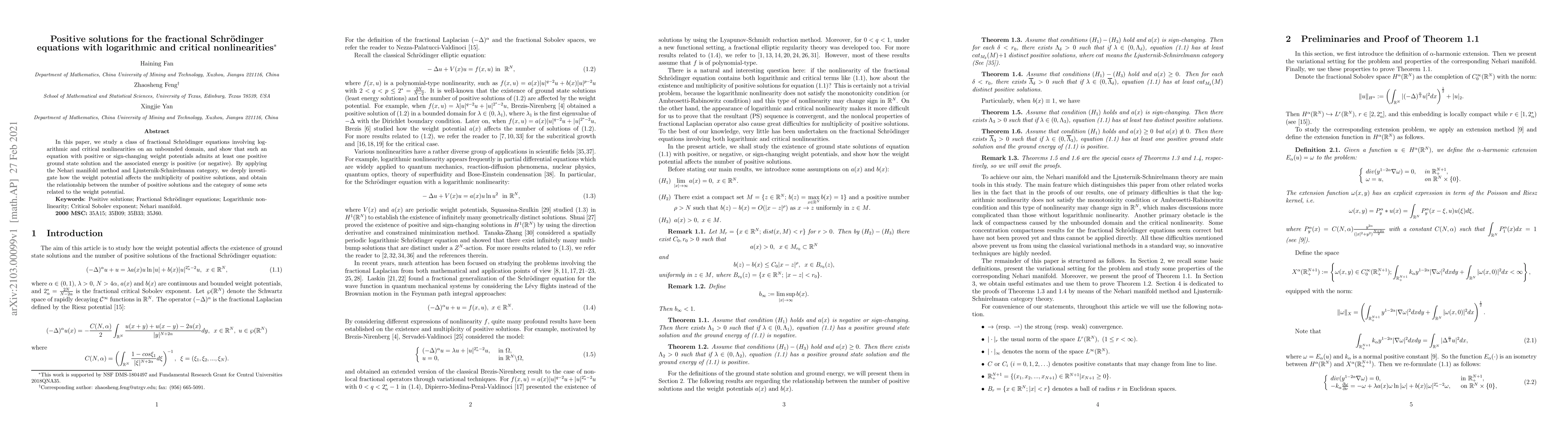 This paper investigates fractional Schrödinger equations with logarithmic and critical nonlinearities, proving the existence of at least one positive ground state solution under positive or sign-changing weight potentials. The study employs the Nehari manifold method and Ljusternik-Schnirelmann category to explore the impact of the weight potential on solution multiplicity.