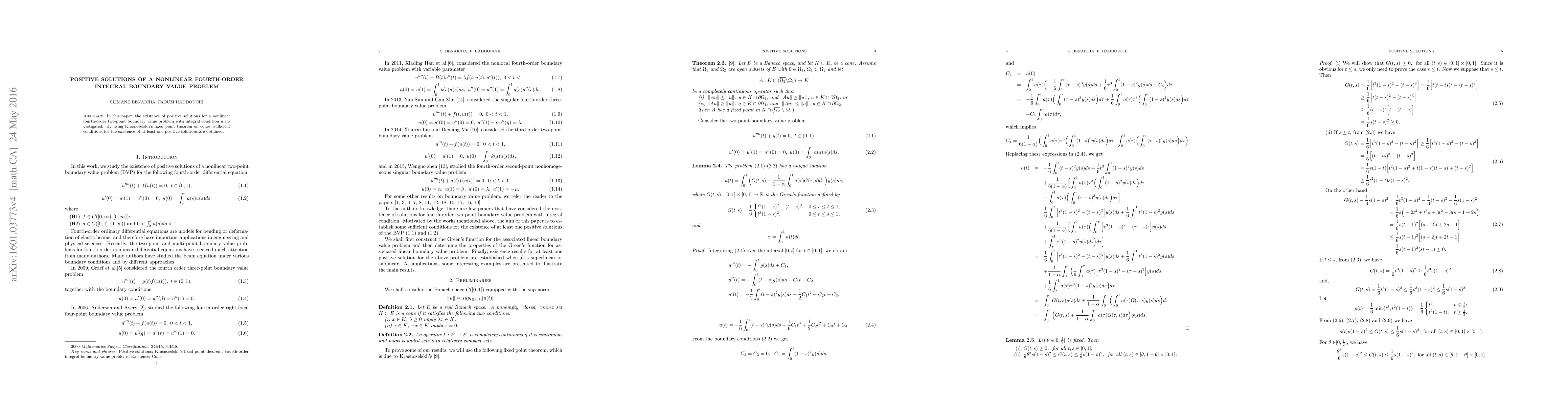 This paper investigates the existence of positive solutions for a nonlinear fourth-order boundary value problem with integral conditions. Sufficient conditions are derived using Krasnoselskii's fixed point theorem on cones.