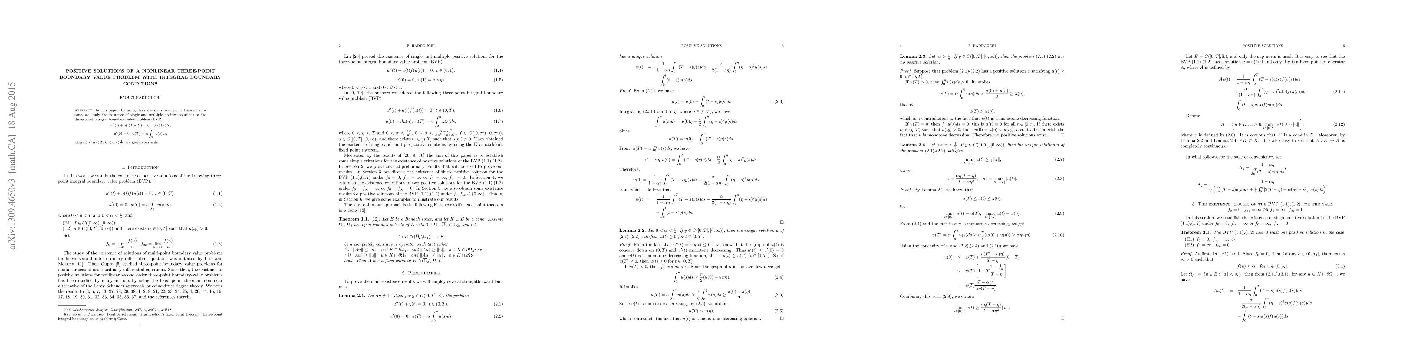 three-point integral boundary value problem (BVP) \begin{equation*}