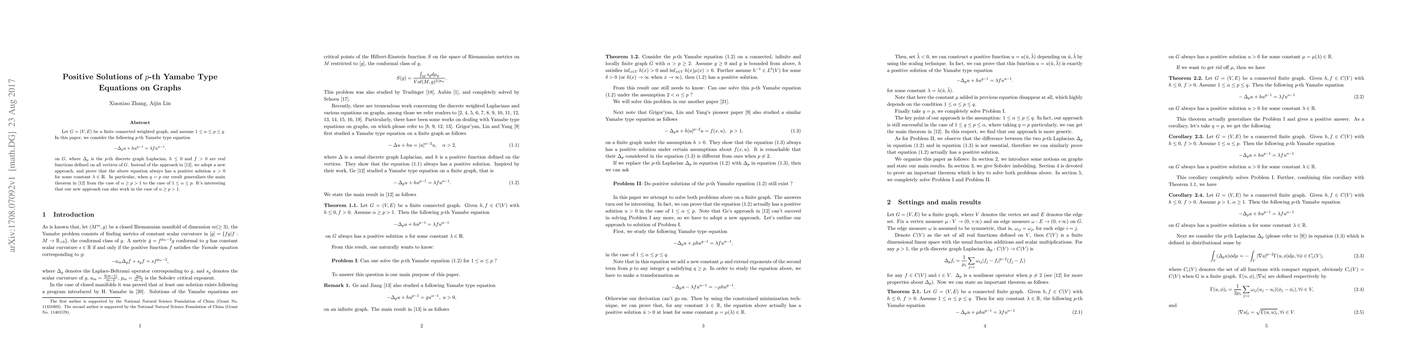 Let $G=(V,E)$ be a finite connected weighted graph, and assume $1\leq\alpha\leq p\leq q$. In this paper, we consider the following $p$-th Yamabe type equation $$-\Delta_pu+hu^{q-1}=\lambda fu^{\alpha-1}.$$ on $G$, where $\Delta_p$ is the $p$-th discrete graph Laplacian, $h\leq0$ and $f>0$ are real functions defined on all vertices of $G$. Instead of the approach in [Ge3], we adopt a new approach, and prove that the above equation always has a positive solution $u>0$ for some constant $\lambda\in\mathbb{R}$. In particular, when $q=p$ our result generalizes the main theorem in [Ge3] from the case of $\alpha\geq p>1$ to the case of $1\leq\alpha\leq p$. It's interesting that our new approach can also work in the case of $\alpha\geq p>1$.
