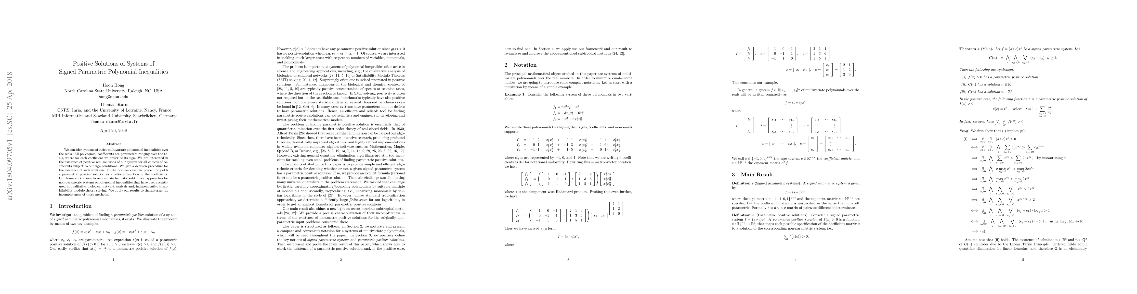 We consider systems of strict multivariate polynomial inequalities over the reals. All polynomial coefficients are parameters ranging over the reals, where for each coefficient we prescribe its sign. We are interested in the existence of positive real solutions of our system for all choices of coefficients subject to our sign conditions. We give a decision procedure for the existence of such solutions. In the positive case our procedure yields a parametric positive solution as a rational function in the coefficients. Our framework allows to reformulate heuristic subtropical approaches for non-parametric systems of polynomial inequalities that have been recently used in qualitative biological network analysis and, independently, in satisfiability modulo theory solving. We apply our results to characterize the incompleteness of those methods.