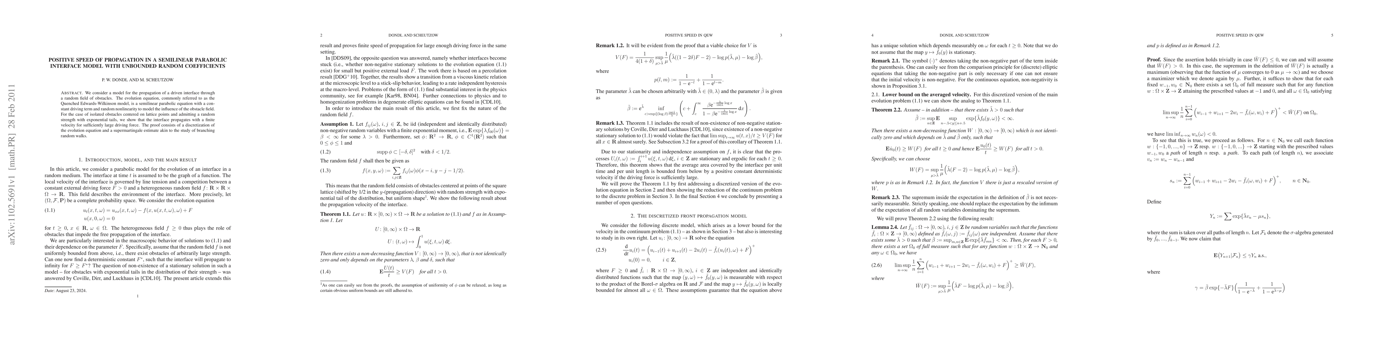 This paper investigates the Quenched Edwards-Wilkinson model, a semilinear parabolic equation with random coefficients, to demonstrate that an interface propagates with a finite velocity under a sufficiently large driving force. The proof employs a discretization technique and a supermartingale estimate.