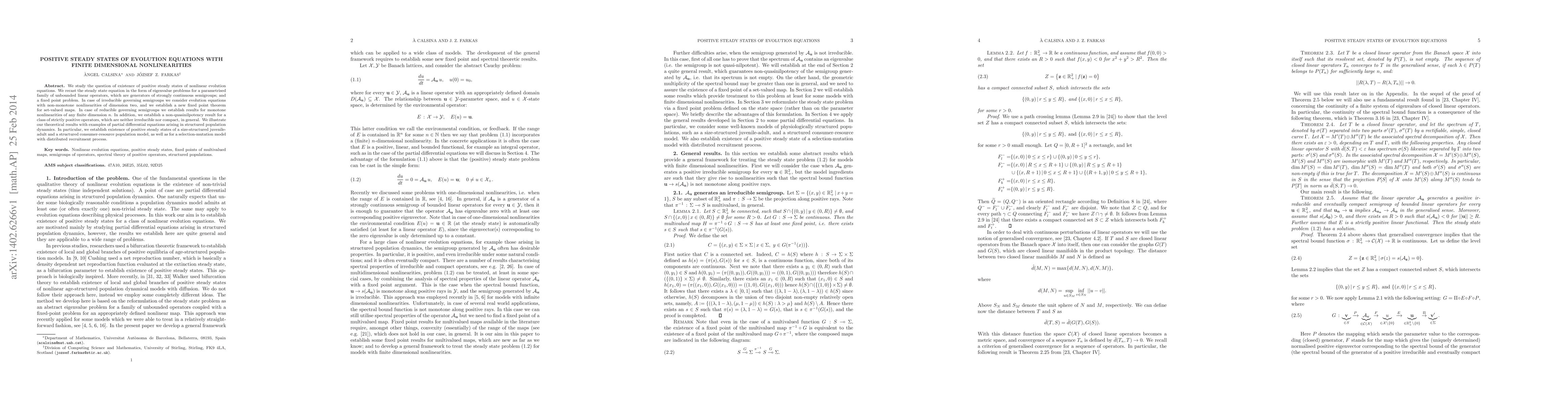 We study the question of existence of positive steady states of nonlinear evolution equations. We recast the steady state equation in the form of eigenvalue problems for a parametrised family of unbounded linear operators, which are generators of strongly continuous semigroups; and a fixed point problem. In case of irreducible governing semigroups we consider evolution equations with non-monotone nonlinearities of dimension two, and we establish a new fixed point theorem for set-valued maps. In case of reducible governing semigroups we establish results for monotone nonlinearities of any finite dimension $n$. In addition, we establish a non-quasinilpotency result for a class of strictly positive operators, which are neither irreducible nor compact, in general. We illustrate our theoretical results with examples of partial differential equations arising in structured population dynamics. In particular, we establish existence of positive steady states of a size-structured juvenile-adult and a structured consumer-resource population model, as well as for a selection-mutation model with distributed recruitment process.