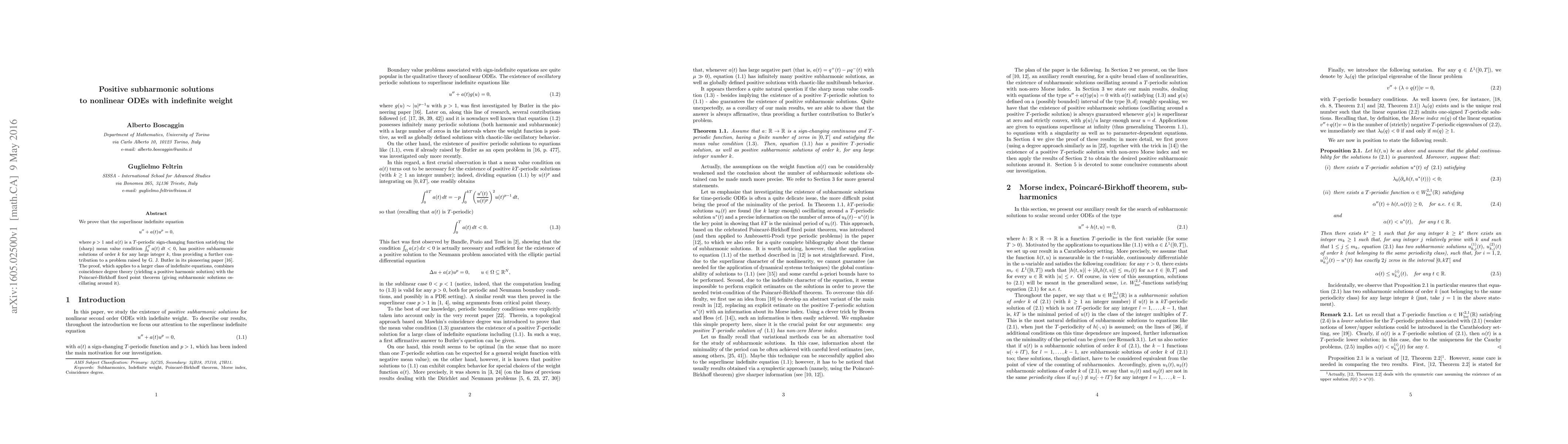 We prove that the superlinear indefinite equation \begin{equation*} u" + a(t)u^{p} = 0, \end{equation*} where $p > 1$ and $a(t)$ is a $T$-periodic sign-changing function satisfying the (sharp) mean value condition $\int_{0}^{T} a(t)~\!dt < 0$, has positive subharmonic solutions of order $k$ for any large integer $k$, thus providing a further contribution to a problem raised by G. J. Butler in its pioneering paper (JDE, 1976). The proof, which applies to a larger class of indefinite equations, combines coincidence degree theory (yielding a positive harmonic solution) with the Poincar\'e-Birkhoff fixed point theorem (giving subharmonic solutions oscillating around it).