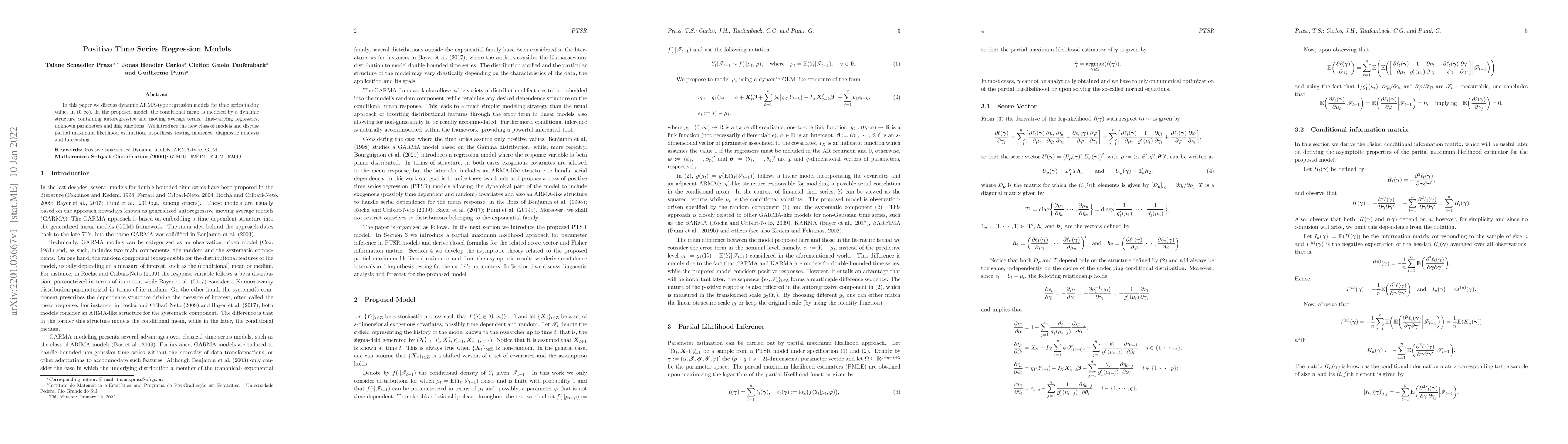 This paper introduces dynamic ARMA-type regression models for positive time series data, incorporating autoregressive, moving average terms, and unknown parameters. The proposed model enables partial maximum likelihood estimation, hypothesis testing, and forecasting for predicting future values in the time series.