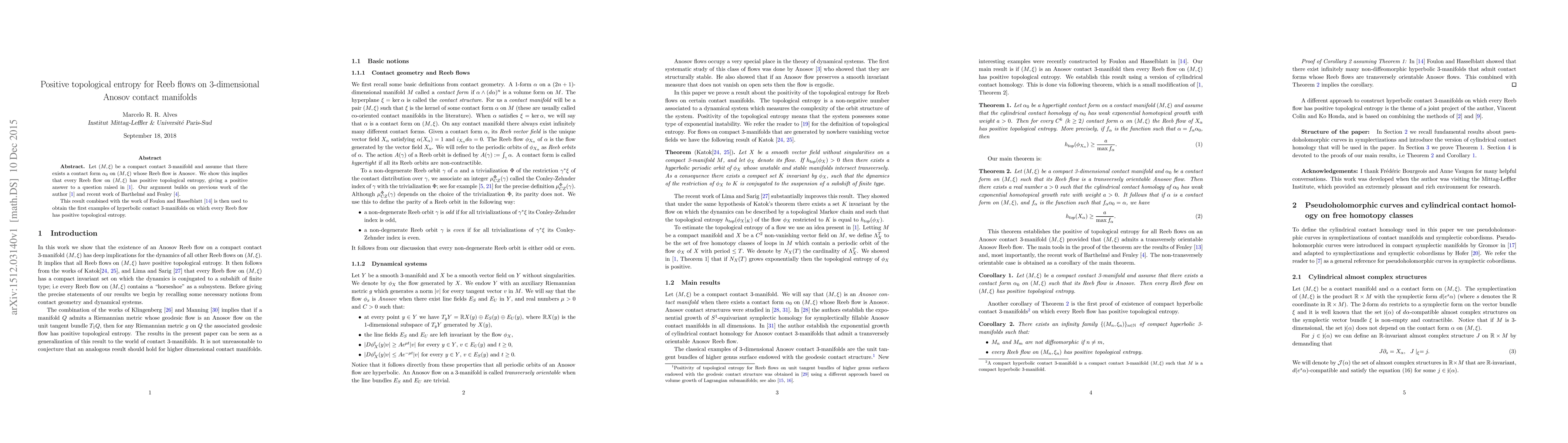 The research utilizes symplectic geometry and contact topology, constructing exact symplectic cobordisms and employing pseudoholomorphic curves to analyze Reeb flows on 3-dimensional Anosov contact manifolds.
