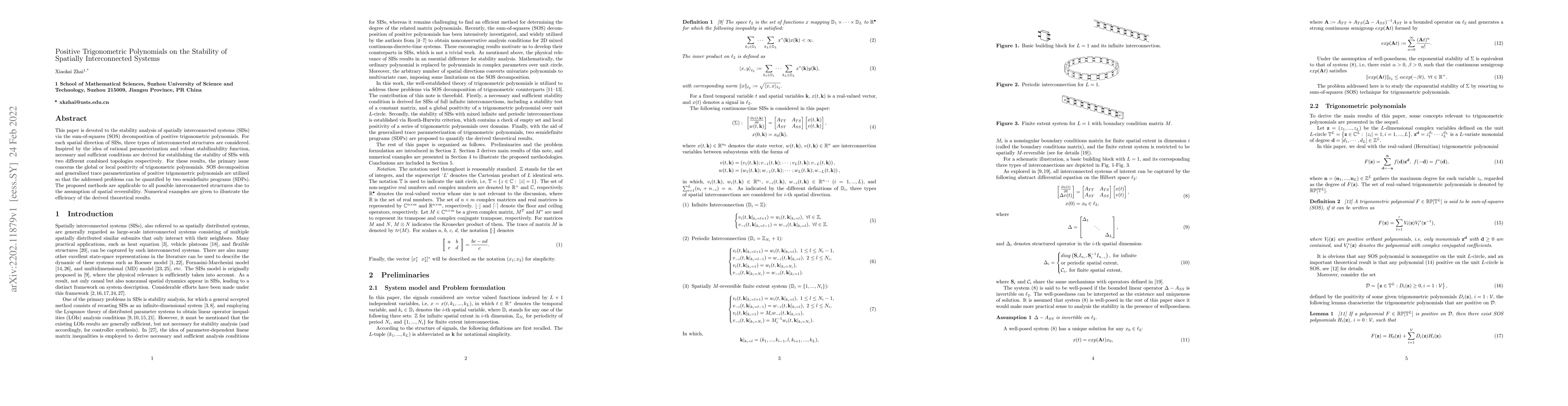 This paper analyzes the stability of spatially interconnected systems (SISs) using the sum-of-squares decomposition of positive trigonometric polynomials. Necessary and sufficient conditions for stability are derived for various interconnected structures, formulated as semidefinite programs, and validated through numerical examples.