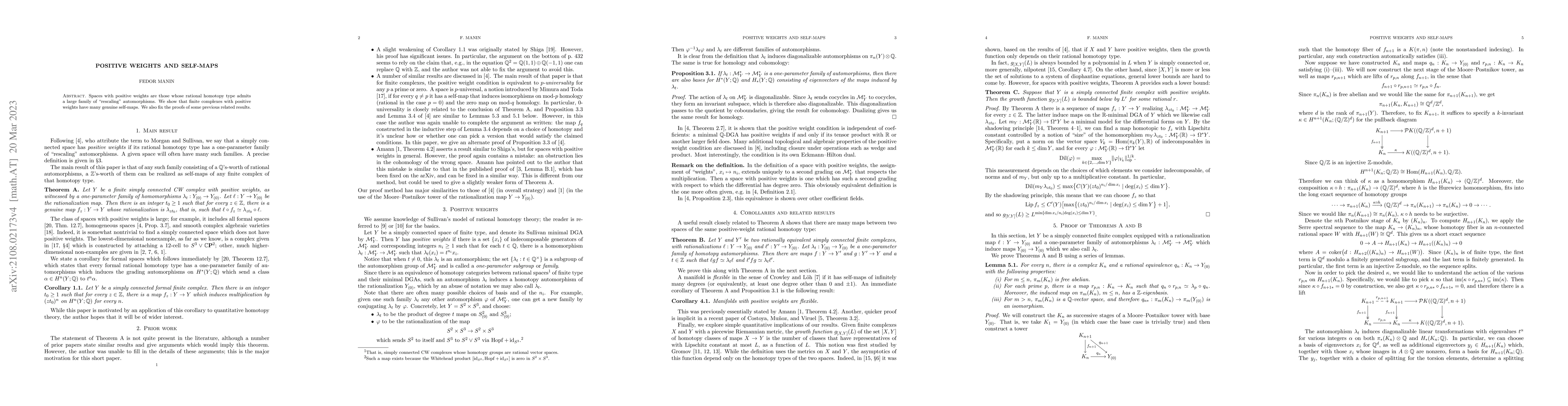 Summary: This paper demonstrates that finite complexes with positive weights possess numerous genuine self-maps and rectifies some previous proofs related to this topic. The study highlights the significance of rescaling automorphisms in rational homotopy theory.