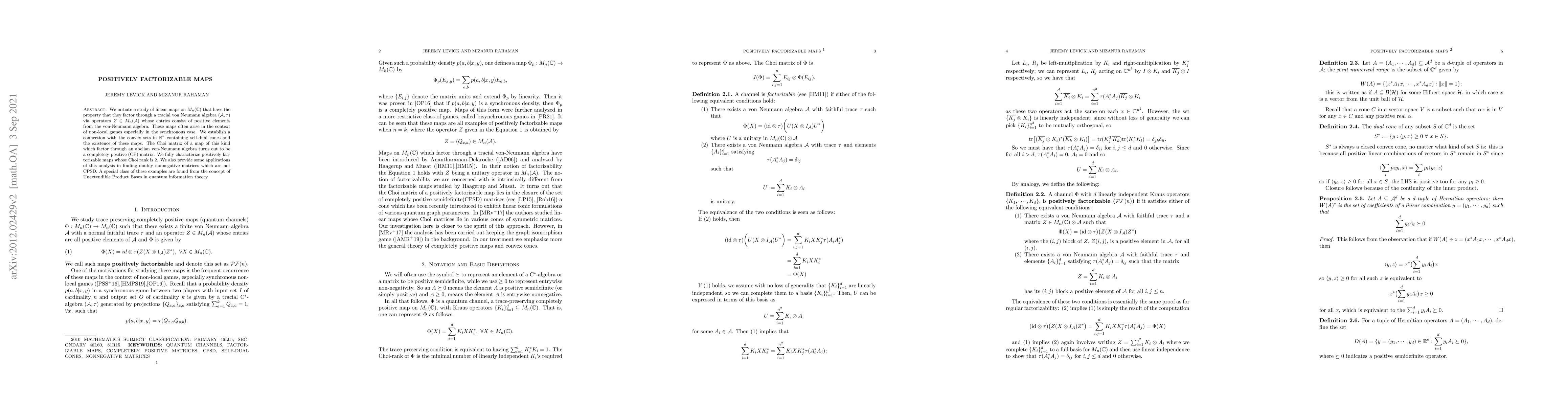 We initiate a study of linear maps on $M_n(\mathbb{C})$ that have the property that they factor through a tracial von Neumann algebra $(\mathcal{A,\tau})$ via operators $Z\in M_n(\mathcal{A})$ whose entries consist of positive elements from the von-Neumann algebra. These maps often arise in the context of non-local games, especially in the synchronous case. We establish a connection with the convex sets in $\mathbb{R}^n$ containing self-dual cones and the existence of these maps. The Choi matrix of a map of this kind which factors through an abelian von-Neumann algebra turns out to be a completely positive (CP) matrix. We fully characterize positively factorizable maps whose Choi rank is 2. We also provide some applications of this analysis in finding doubly nonnegative matrices which are not CPSD. A special class of these examples is found from the concept of Unextendible Product Bases in quantum information theory.