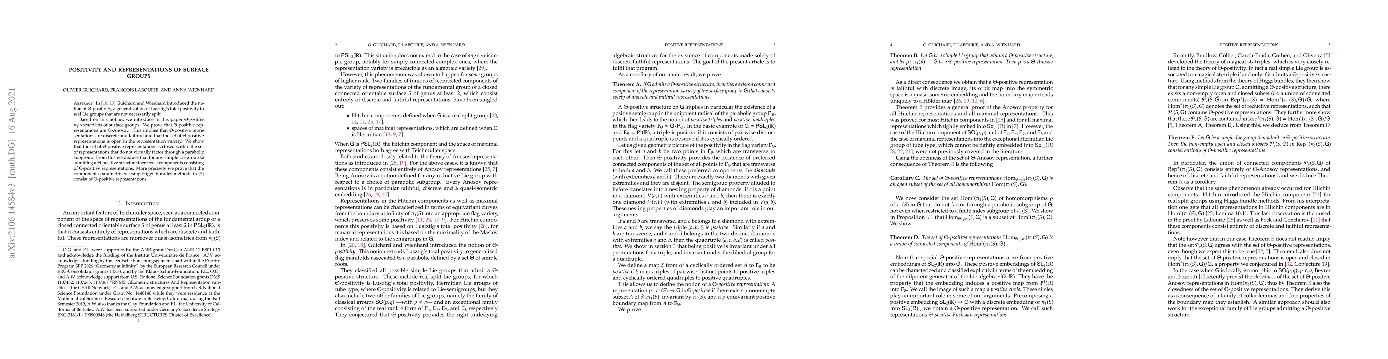 In arXiv:1802.02833 Guichard and Wienhard introduced the notion of $\Theta$-positivity, a generalization of Lusztig's total positivity to real Lie groups that are not necessarily split. Based on this notion, we introduce in this paper $\Theta$-positive representations of surface groups. We prove that $\Theta$-positive representations are $\Theta$-Anosov. This implies that $\Theta$-positive representations are discrete and faithful and that the set of $\Theta$-positive representations is open in the representation variety. We show that the set of $\Theta$-positive representations is closed within the set of representations that do not virtually factor through a parabolic subgroup. From this we deduce that for any simple Lie group $\mathsf G$ admitting a $\Theta$-positive structure there exist components consisting of $\Theta$-positive representations. More precisely we prove that the components parametrized using Higgs bundles methods in arXiv:2101.09377 consist of $\Theta$-positive representations.