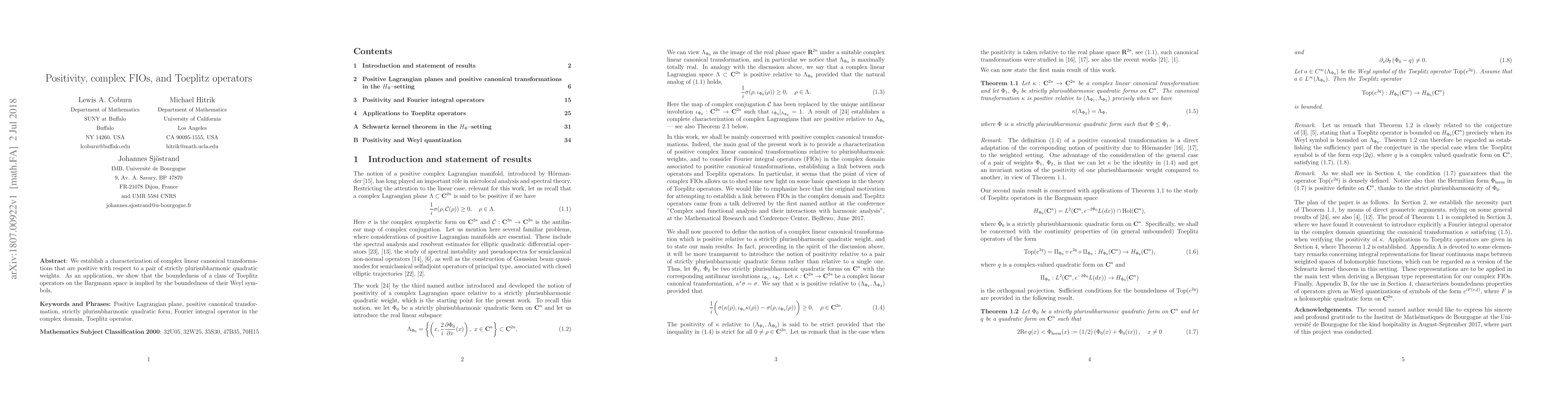 We establish a characterization of complex linear canonical transformations that are positive with respect to a pair of strictly plurisubharmonic quadratic weights. As an application, we show that the boundedness of a class of Toeplitz operators on the Bargmann space is implied by the boundedness of their Weyl symbols.