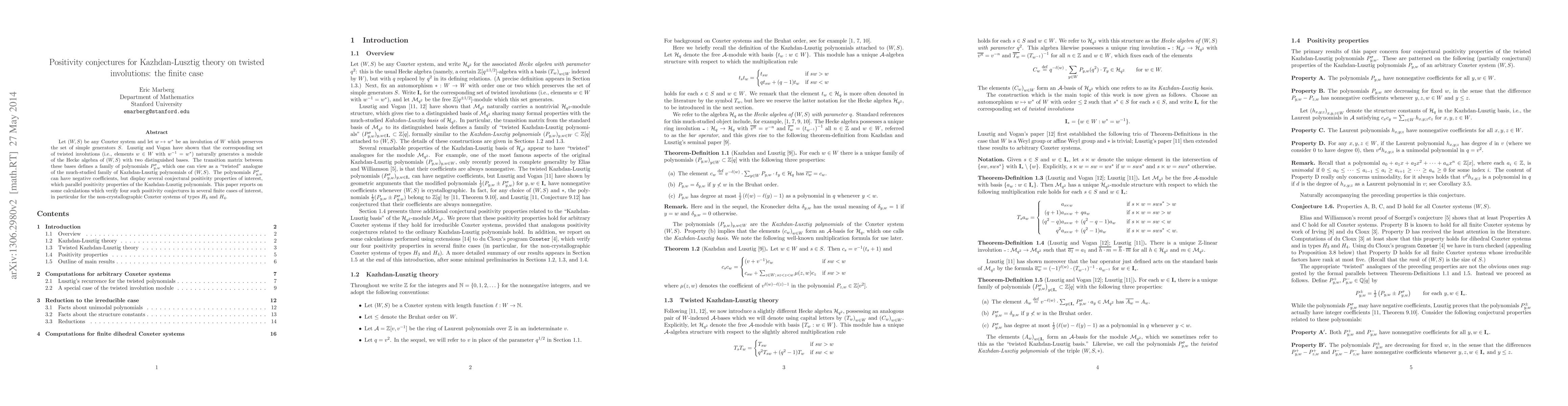 This paper explores the positivity conjectures for twisted Kazhdan-Lusztig polynomials associated with involutions in Coxeter groups, verifying four such conjectures in finite cases, particularly for non-crystallographic Coxeter systems of types $H_3$ and $H_4$. The study parallels the well-known positivity properties of the original Kazhdan-Lusztig polynomials.
