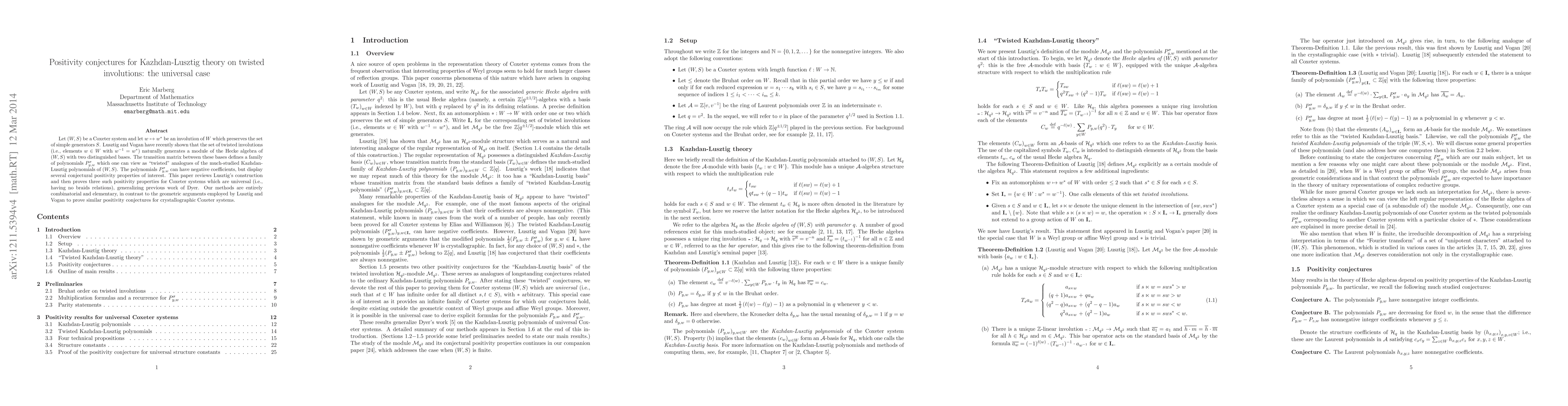 This paper explores Kazhdan-Lusztig-like polynomials, $P^\sigma_{y,w}$, for twisted involutions in universal Coxeter systems, proving three conjectured positivity properties. It uses combinatorial methods, contrasting with the geometric approaches used for crystallographic systems.