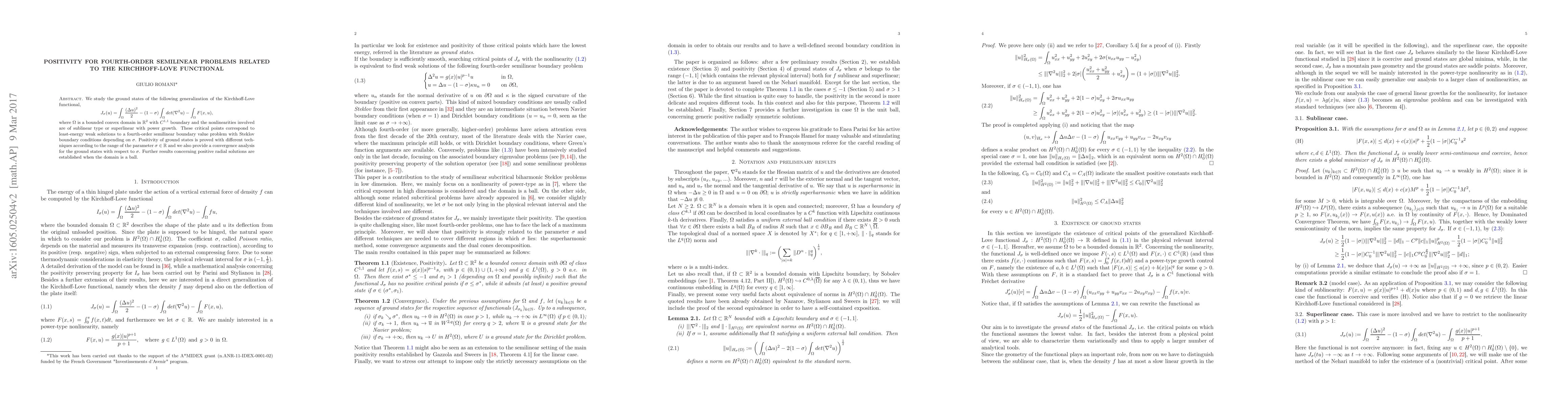 Researchers study ground states of a Kirchhoff-Love functional with sublinear or superlinear nonlinearities, proving positivity for different ranges of the parameter $ heta$ and analyzing convergence with respect to $ heta$. Positive radial solutions are also established in the case of a spherical domain.