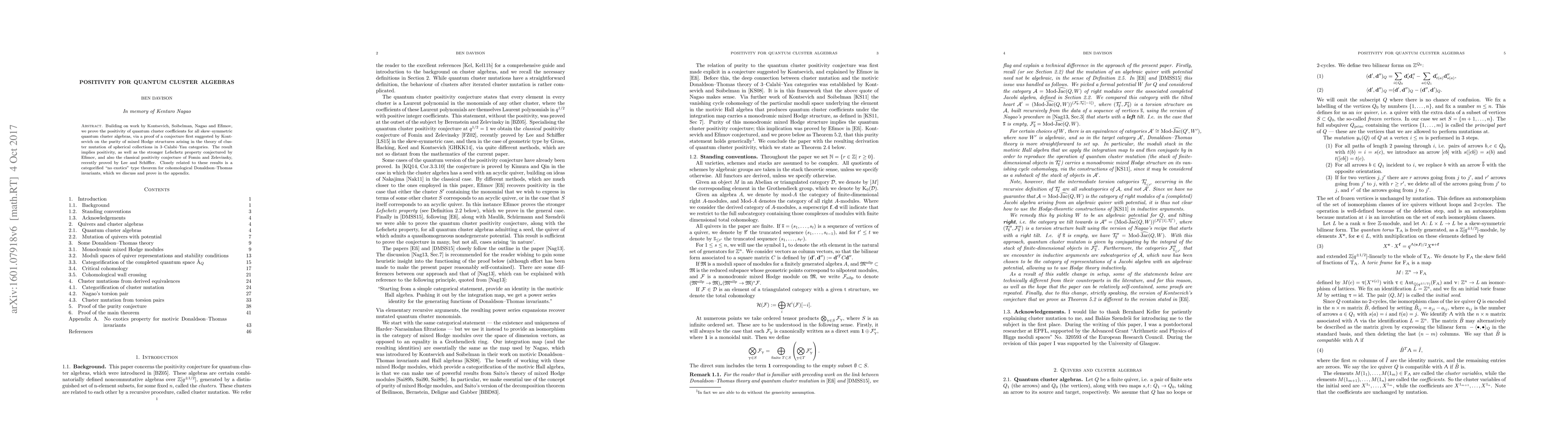 The paper presents a proof of the purity of mixed Hodge structures in cluster mutations, which is fundamental to understanding quantum cluster algebras.