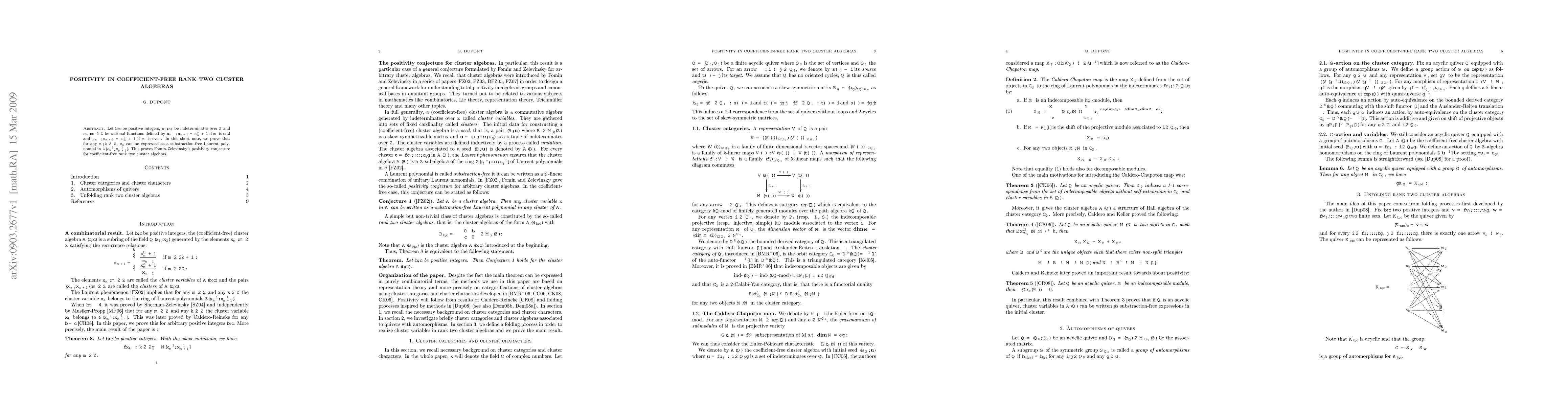 Let $b,c$ be positive integers, $x_1,x_2$ be indeterminates over $\Z$ and $x_m, m \in \mathbb Z$ be rational functions defined by $x_{m-1}x_{m+1}=x_m^b+1$ if $m$ is odd and $x_{m-1}x_{m+1}=x_m^c+1$ if $m$ is even. In this short note, we prove that for any $m,k \in \Z$, $x_k$ can be expressed as a substraction-free Laurent polynomial in $\Z[x_m^{\pm 1},x_{m+1}^{\pm 1}]$. This proves Fomin-Zelevinsky's positivity conjecture for coefficient-free rank two cluster algebras.