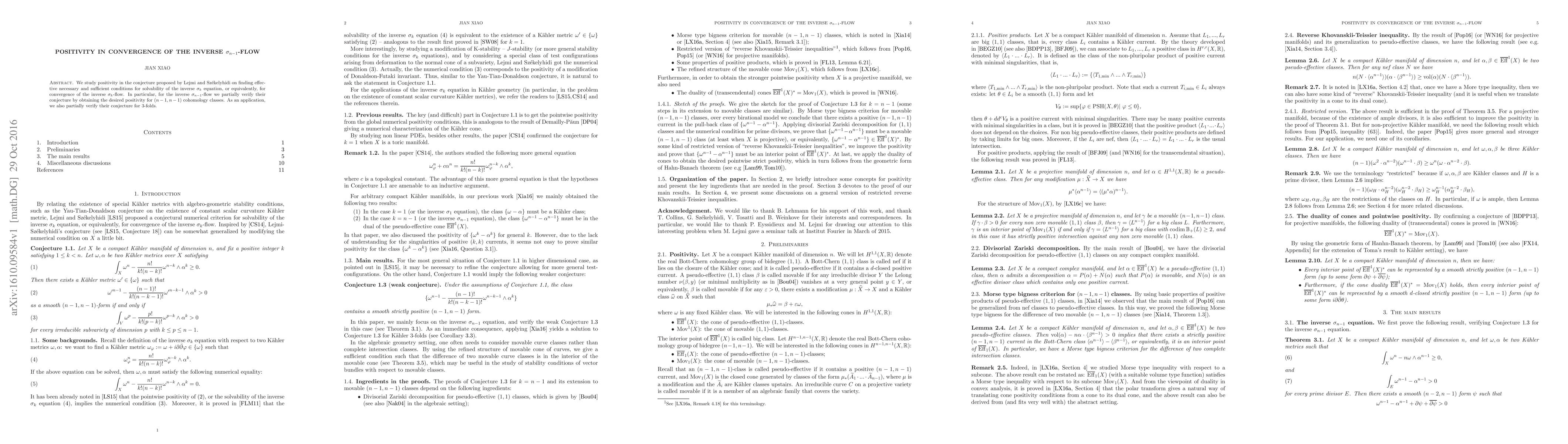 This research verifies part of Lejmi and Sz'{e}kelyhidi's conjecture on the inverse $sigma_{n-1}$-flow, ensuring positivity for $(n-1, n-1)$ cohomology classes. The findings also partially confirm the conjecture for 3-dimensional folds, contributing to understanding solvability conditions in complex geometry.