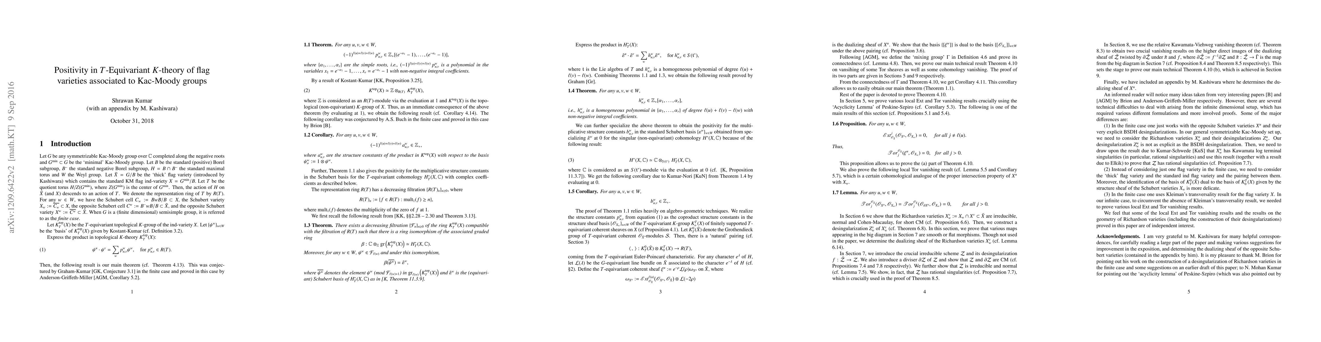 Summary: This paper establishes a positivity theorem for the T-equivariant K-theory of flag varieties linked to symmetrizable Kac-Moody groups, contributing to the understanding of algebraic structures in representation theory.