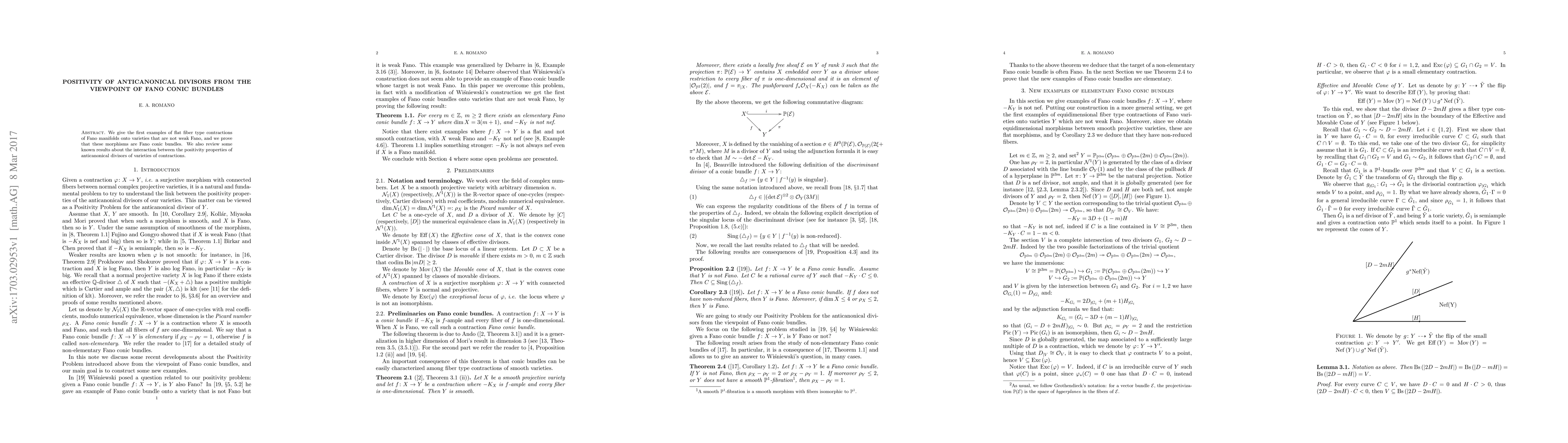 Summary: This paper presents the first examples of flat fiber type contractions of Fano manifolds to non-weak Fano varieties, demonstrating these are Fano conic bundles, and reviews interactions between the positivity properties of anticanonical divisors in these contractions.