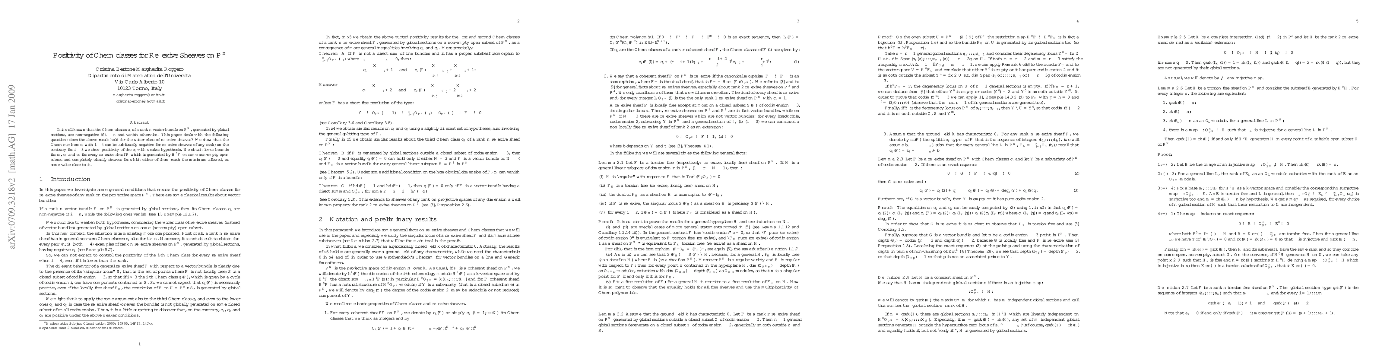 It is well known that the Chern classes $c_i$ of a rank $n$ vector bundle on $\PP^N$, generated by global sections, are non-negative if $i\leq n$ and vanish otherwise. This paper deals with the following question: does the above result hold for the wider class of reflexive sheaves? We show that the Chern numbers $c_i$ with $i\geq 4$ can be arbitrarily negative for reflexive sheaves of any rank; on the contrary for $i\leq 3$ we show positivity of the $c_i$ with weaker hypothesis. We obtain lower bounds for $c_1$, $c_2$ and $c_3$ for every reflexive sheaf $\FF$ which is generated by $H^0\FF$ on some non-empty open subset and completely classify sheaves for which either of them reach the minimum allowed, or some value close to it.